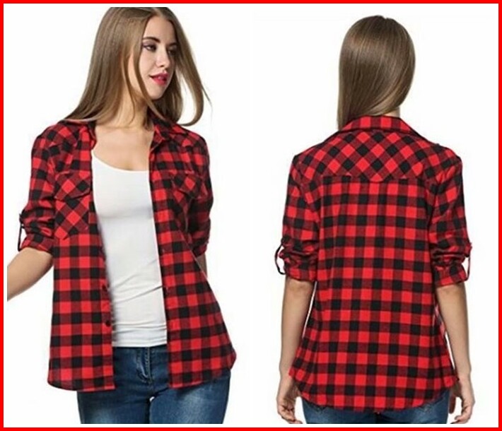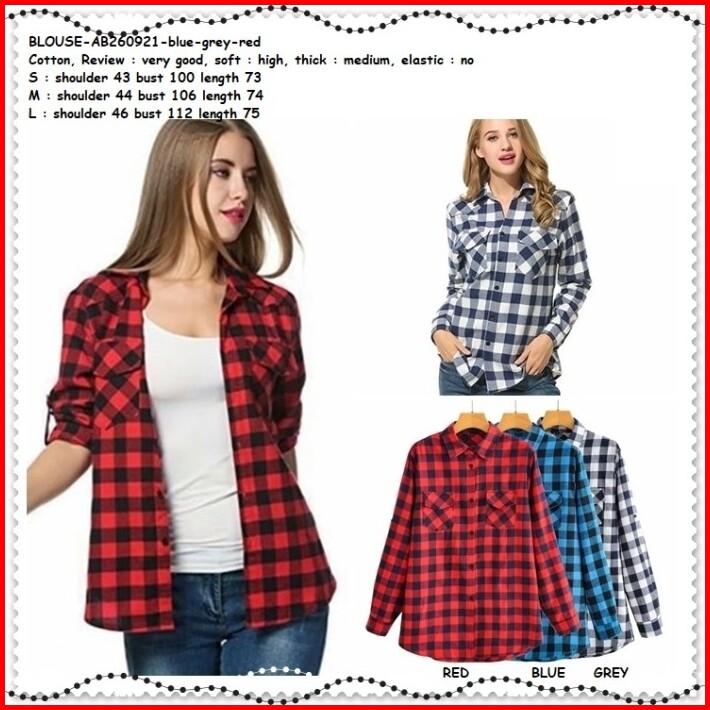 Ab260921 Baju Atasan Kemeja Kotak Merah Wanita Blouse Korea Import