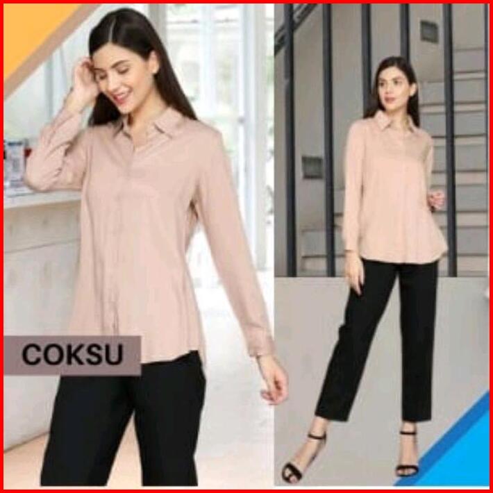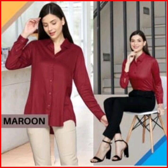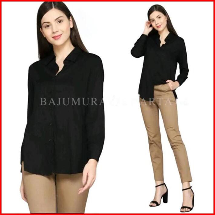Kemeja Hitam Blouse Wanita Jumbo Oversize Santai Kain Katun Shakila Twill Basic Formal Mewah Baju Atasan Kemeja Kancing