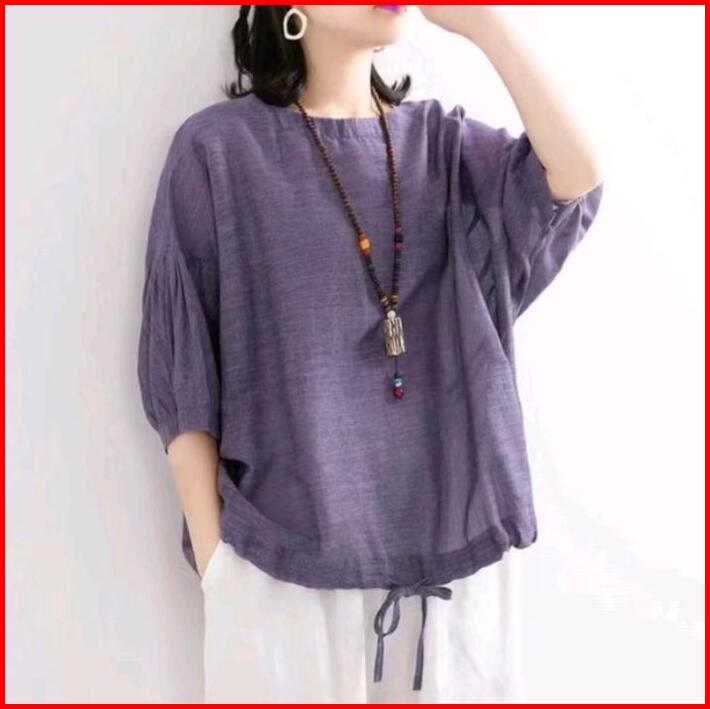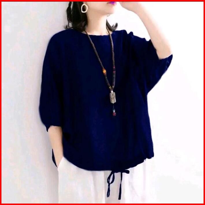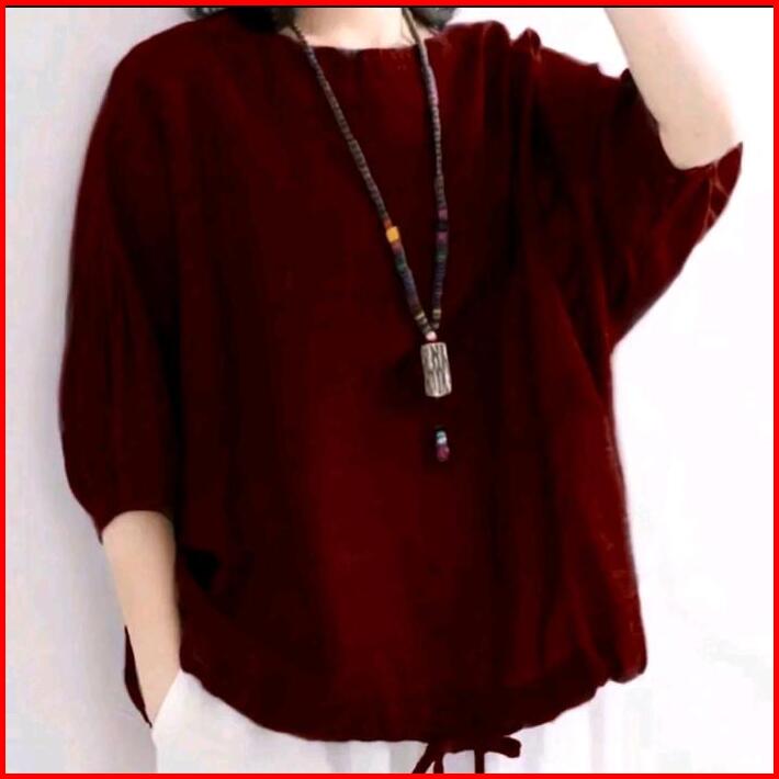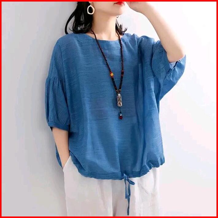 Blouse Polo Linen Asmora Atasan Wanita Terbaru Dewasa Kerja Casual
