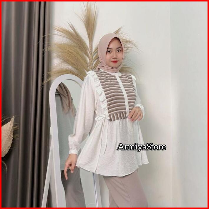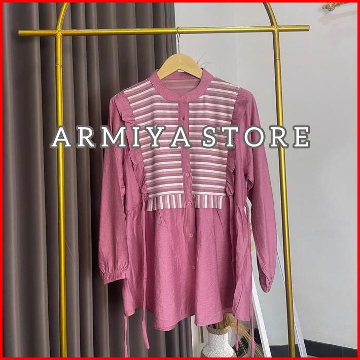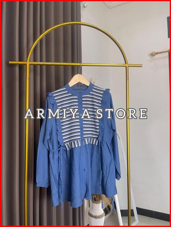 Ashilla Blouse Jumbo Polo Linen Pinggang Tali