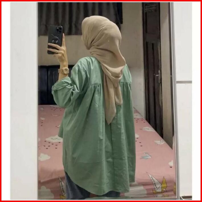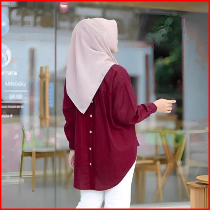 Kemeja Rika Top Linen Atasan Wanita Shirt Oversize Kancing Belakang Katun Baju Nyaman
