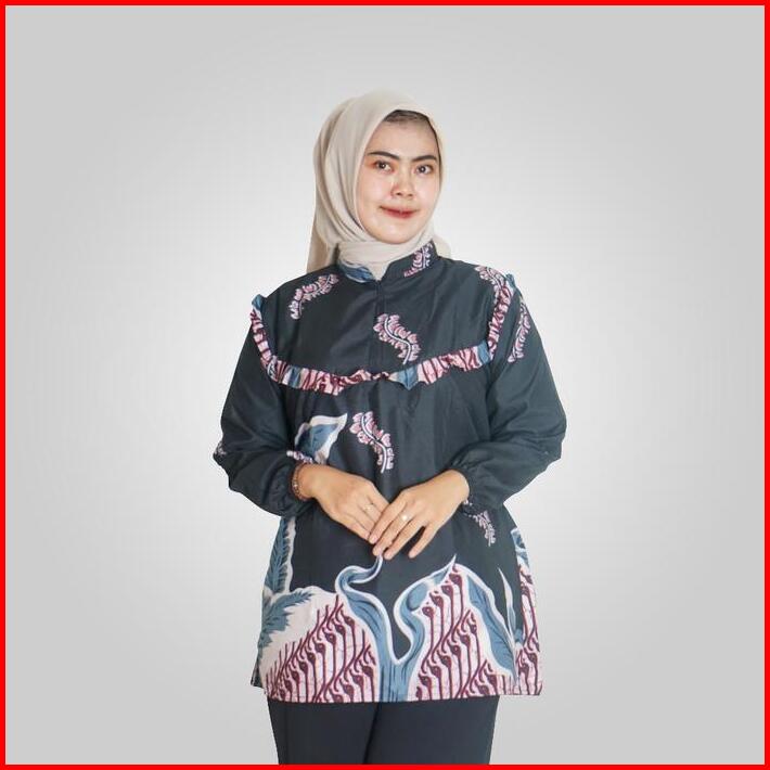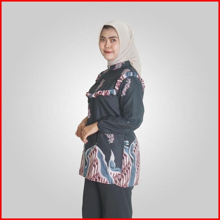 Batik Trusmi Atasan Wanita Blouse Batik Kerja Daun Abstrak Hitam Bul Baju Katun Motif Muslim Nyaman Printing Panjang Gar