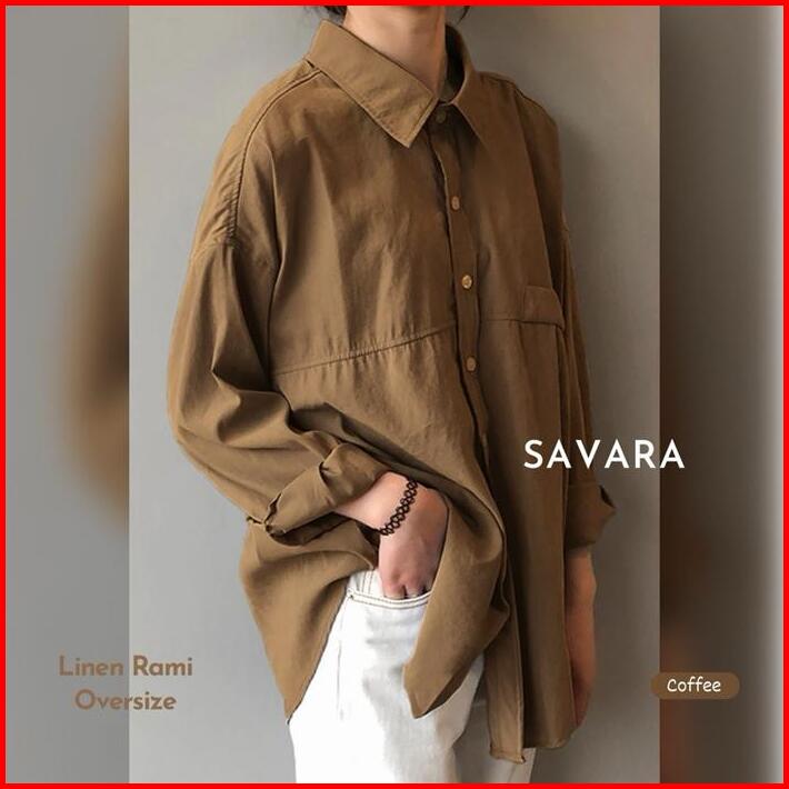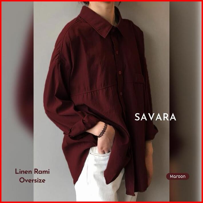 Lyra Oversize Blouse Rami Baju Kemeja Atasan Basic Polos Wanita Casual Formal Kerja Bahan Linen Rami Savara