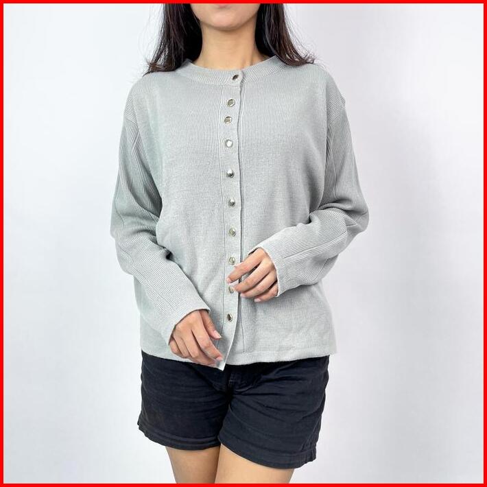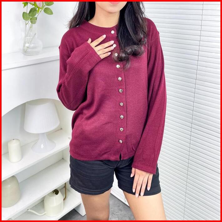 Alzi Kannara Knitwear Cardigan Rajut Premium Atasan Wanita Lengan Panjang Garis Aesthetic Baju Kardigan Outer Tebal