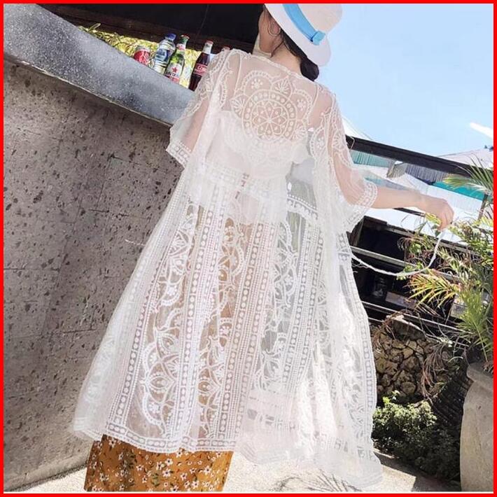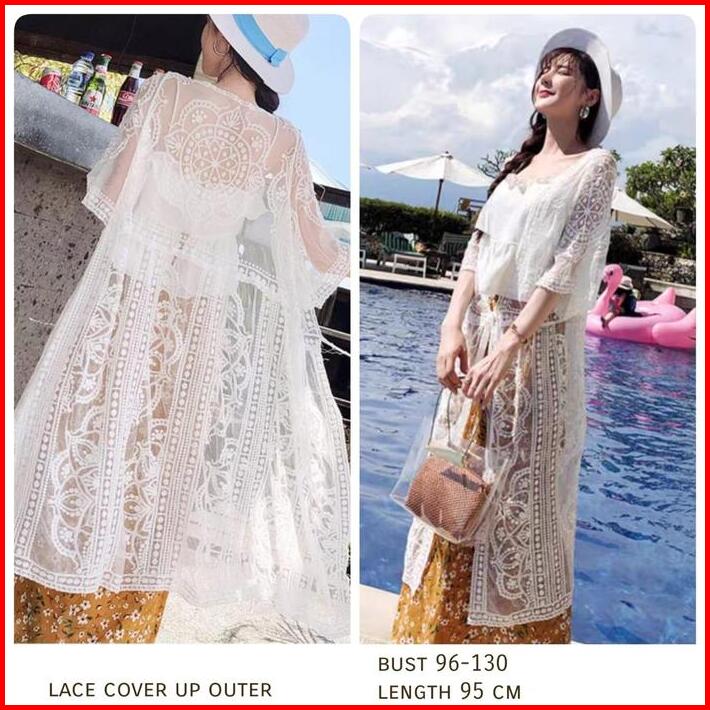 Vorry Lace Cover Up Outer Fit Size M-xl Fashion Wanita Luaran Cantik Baju Pantai Menerawang Casual Kasual Outfit Santai