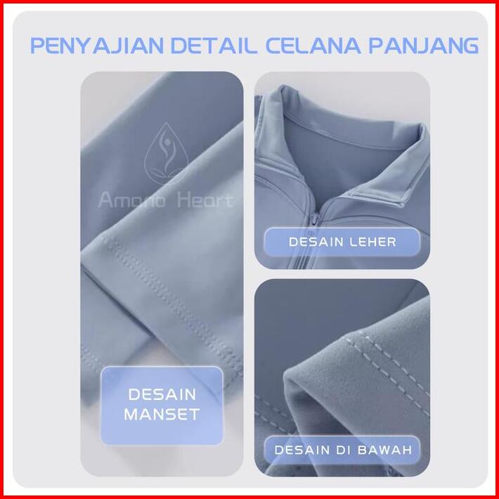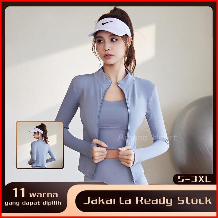 Amanoheartlengan Panjang Jaket Olahraga Wanita Pakaian Olahraga Yoga Anti Uv Baju Upf50 Gym Atasan Kerah Pilates Jogging
