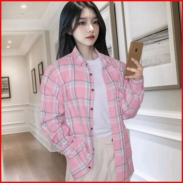 Kemeja Flanel Motif Cewe Best Seller Kotak Tebal Wanita Baju Tartan Atasan Tangan Panjang Cewek Casual Dewasa Kain Nyama