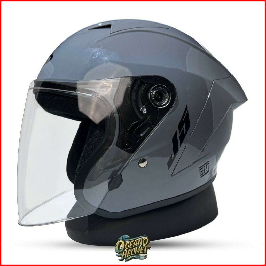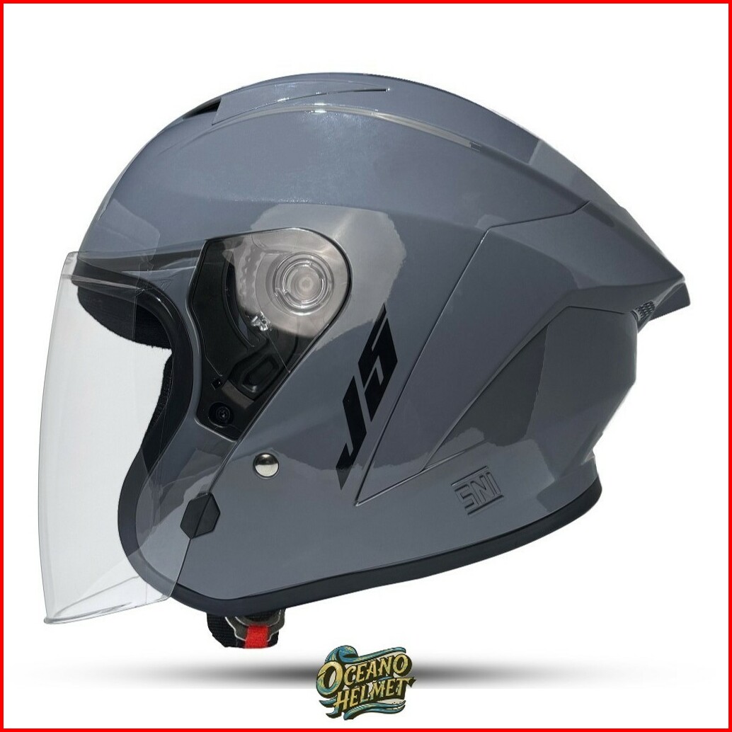 Helm Mla J5 Grey Glosy Kaca Visor Bening Helm Half Face Premium Untuk Pria Dan Wanita Dewasa Sni