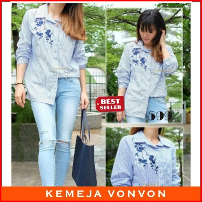 Baju Atasan Kemeja Wanita Cewek Vonie Bordir Blouse Tunik Salur