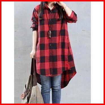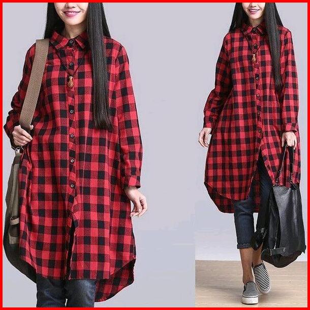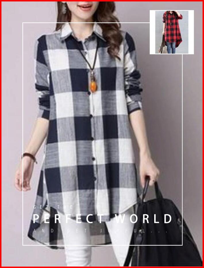 Kemeja Tunik Flanel Kotak Tunik Kemeja Terbaru Kain Lembut Baju Atasan Wanita Kancing Casual Lengan Panjang Oversize Lin
