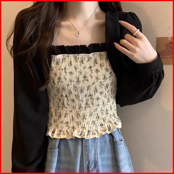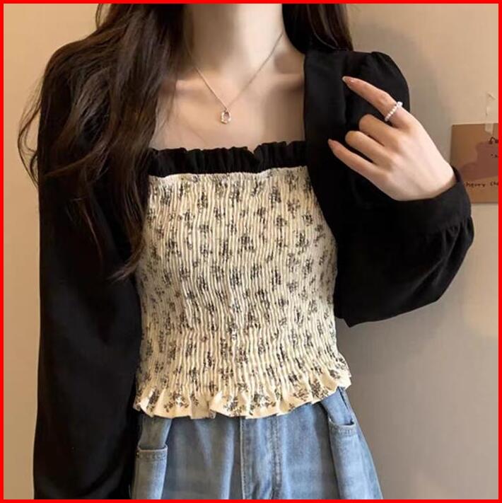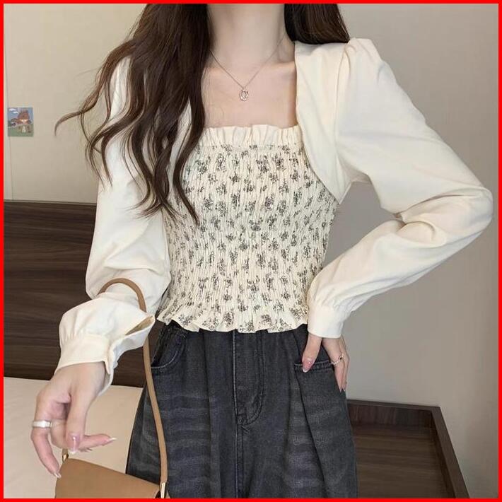 Blouse 3771 Atasan Balero Nempel Bahan Katun Katun Polos Bunga Panjang Wanita Baju Kemeja Viral
