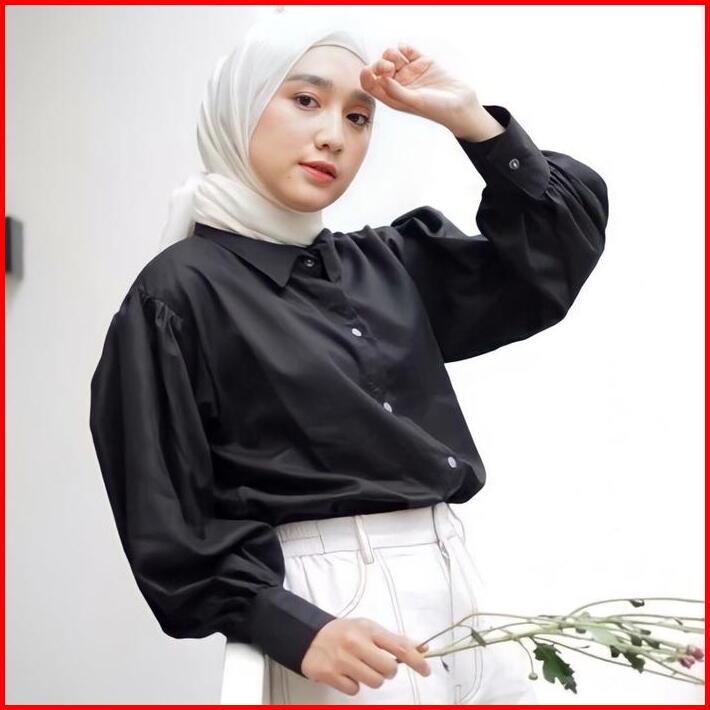 Audry Rufi Basic Shirt Kemeja Polos Basic Wanita Lengan Panjang Muslim Baju Atasan Remaja Casual