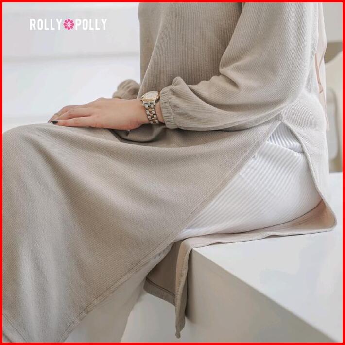 Rolly Polly Iris Tunic Knit Tunik Knit Wanita Long Sleeve Baju Tunik Lengan Panjang Wanita Knit Rib Premium Muslim Atasa