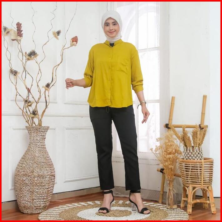 Tiny Shirt Blouse Saku Rayon Twill Premium Kemeja Polos Rayon Twill Premium Kemeja Wanita Kekinian Wanita Baju Atasan Ce