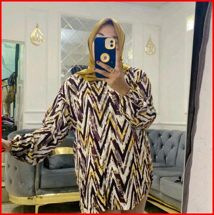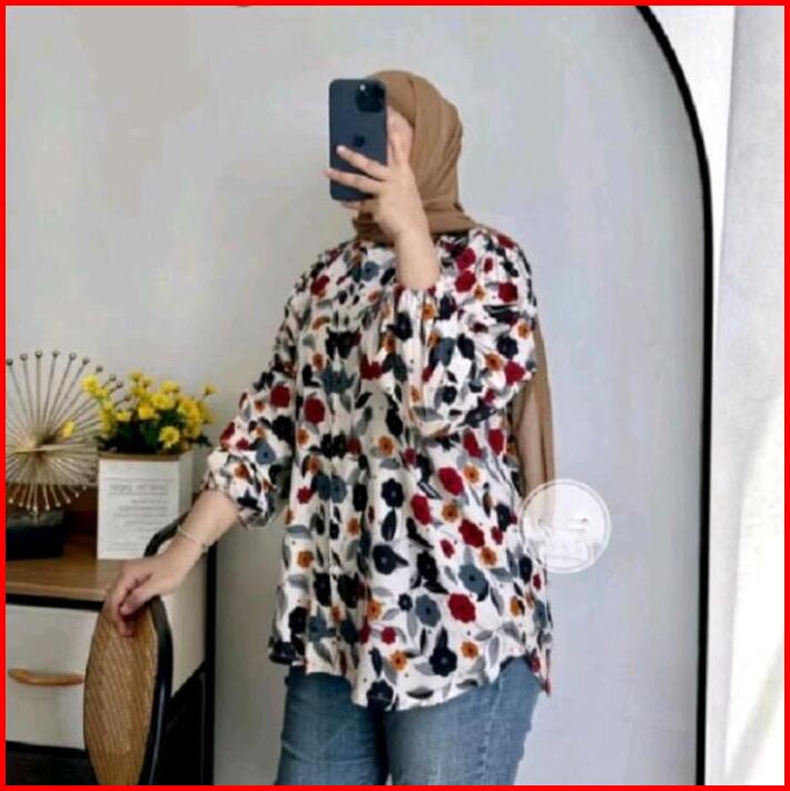 Blouse Rayon Motif Blouse Rayon Kerah Atasan Kekinian Baju Wanita Katun Bunga Casual Kancing Panjang