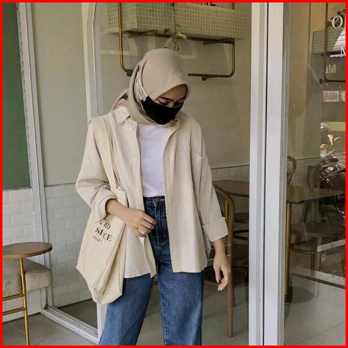 Kemeja Linen Kemeja Kemeja Terbaru Linen Baju Oversize Kancing Panjang Fit Wanita Atasan