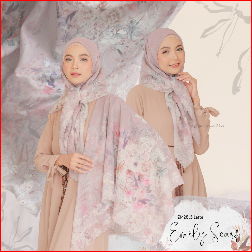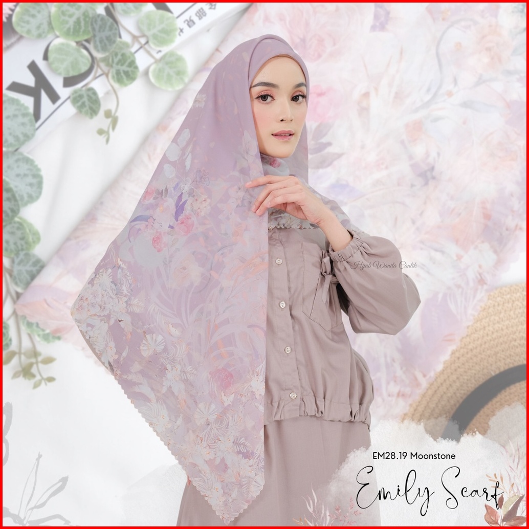 Hijabwanitacantik - Emily Scarf Polycotton Moonstone Hijab Segi Empat Motif Jilbab Segiempat