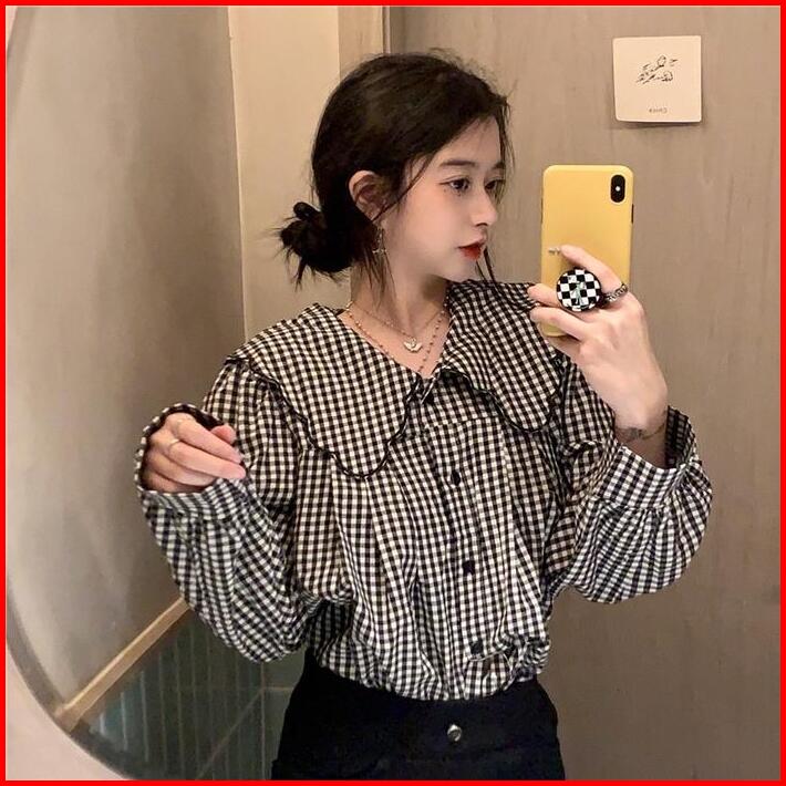 Candy Blouse Kotak Kerah Wanita Lengan Panjang Atasan Baju