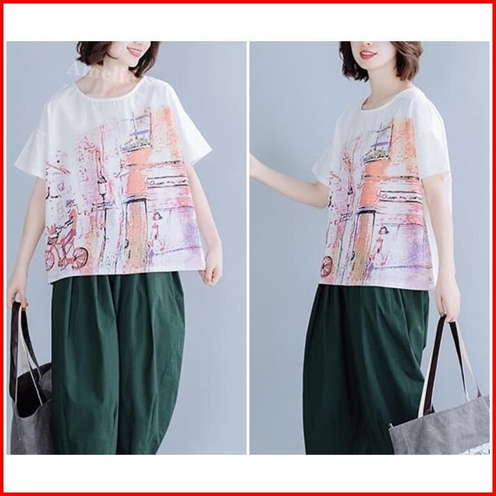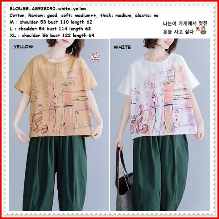 Ab938090 Baju Atasan Katun Wanita Blouse Korea Import Putih White