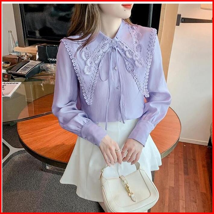 Davinne Lace Collar Shirt Fit Size M-l Fashion Atasan Wanita Bahan Twiscone Polos Pink Putih Ungu Casual Outfit Kasual S