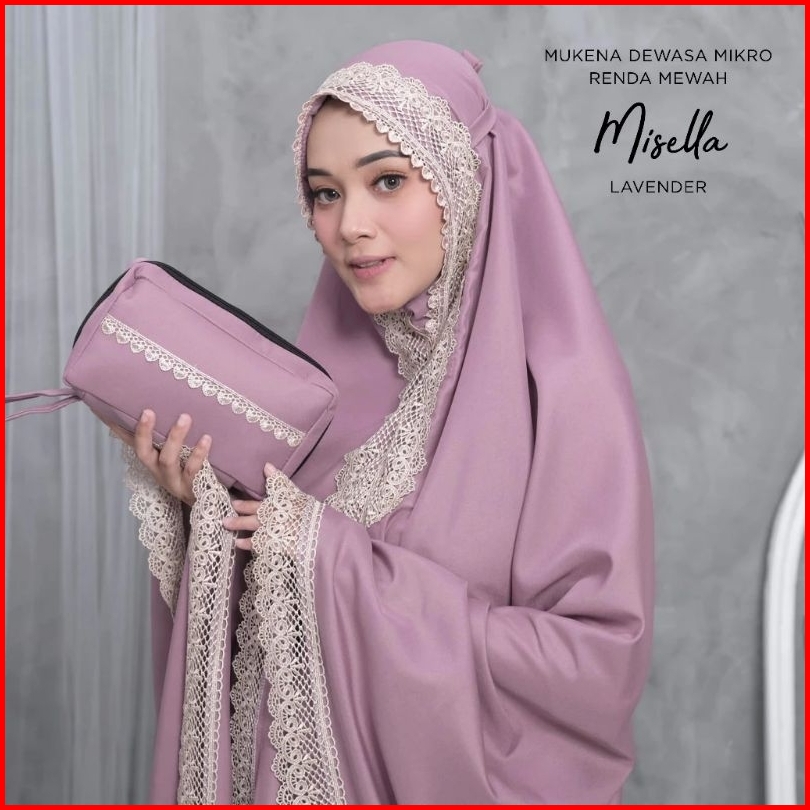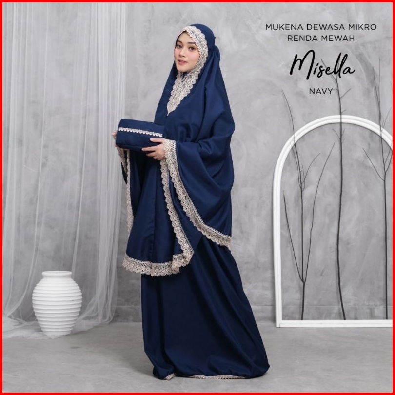 Famus - Mukena Misella Dewasa Renda Mewah 2in1 Resleting Polos Bahan Katun Mikro Hitam Putih Navy Lavender Milo Wardah P