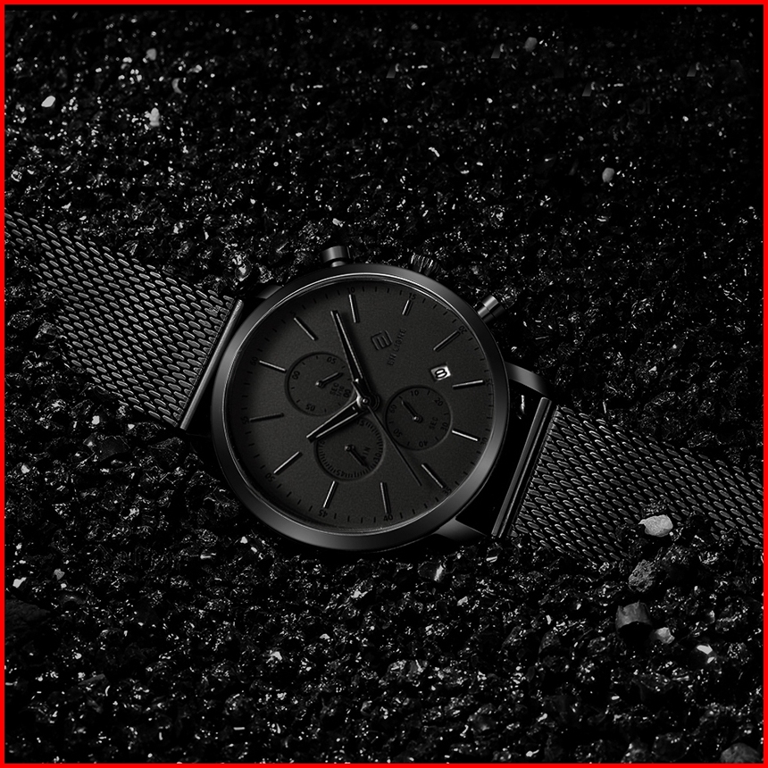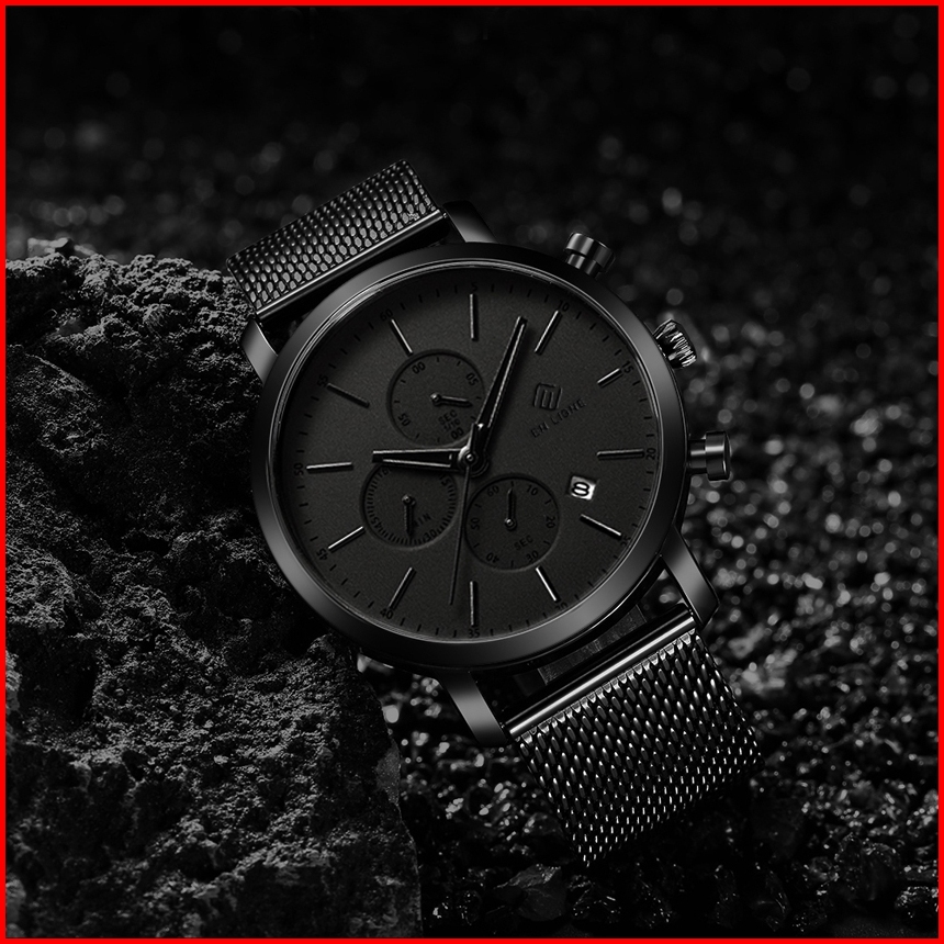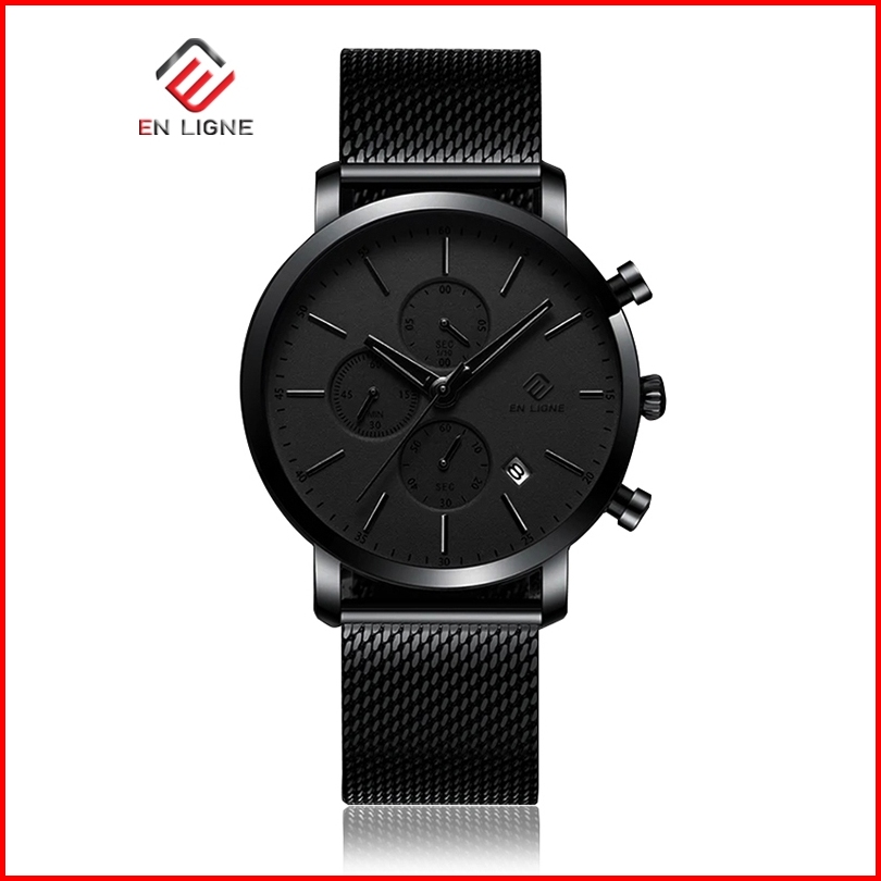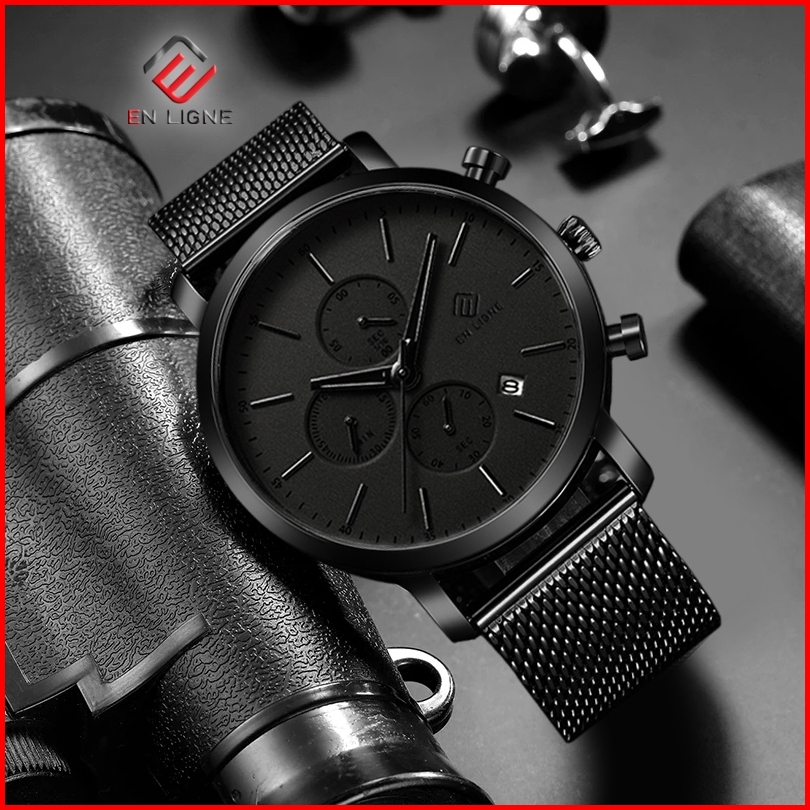 En Ligne - Jam Tangan Pria Kasual Analog Quartz Tanggal Tali Rantai Pasir El7169