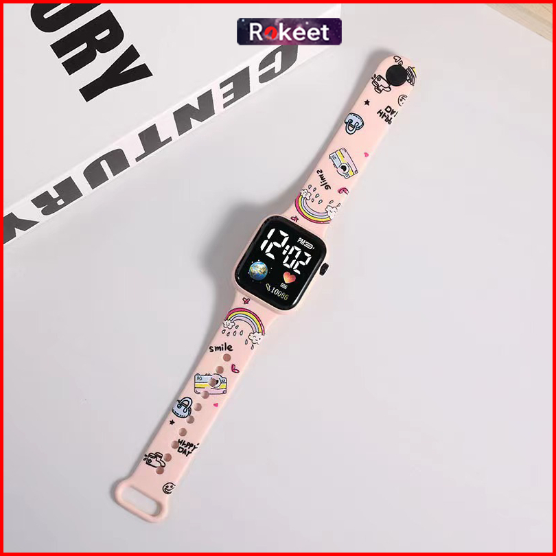 Rokeet Jam Tangan Digital Anak Led Screen Strap Kartun Lucu