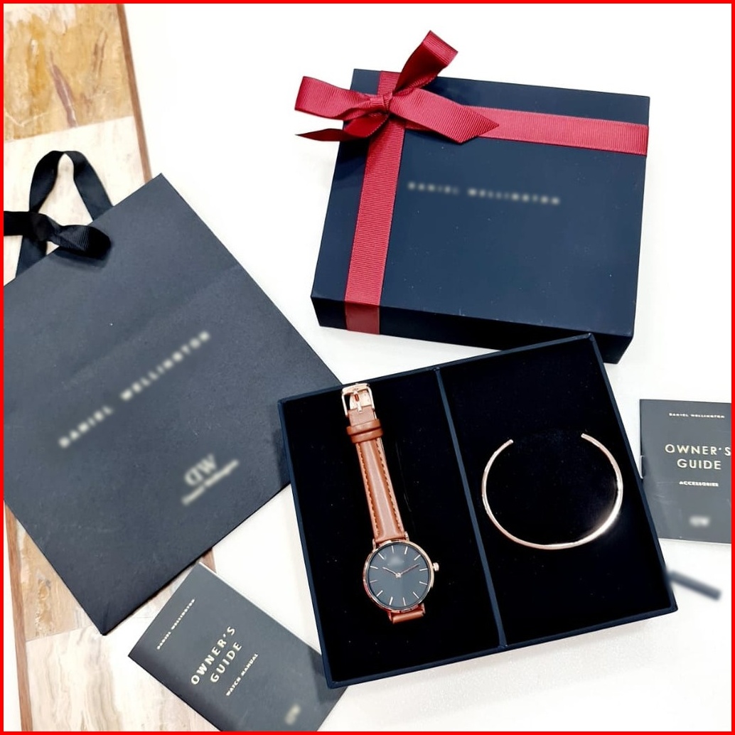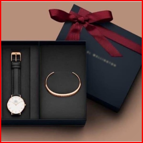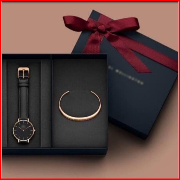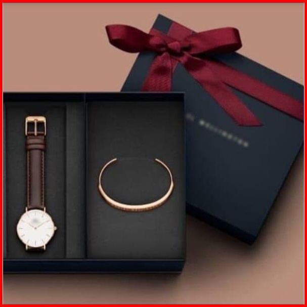 Jam Tangan Wanita Fashion Plus Gelang Classic Free Box Strap Leather - - - Grosir