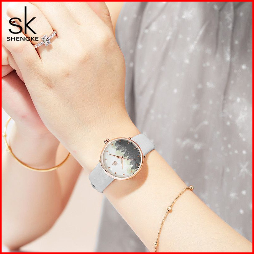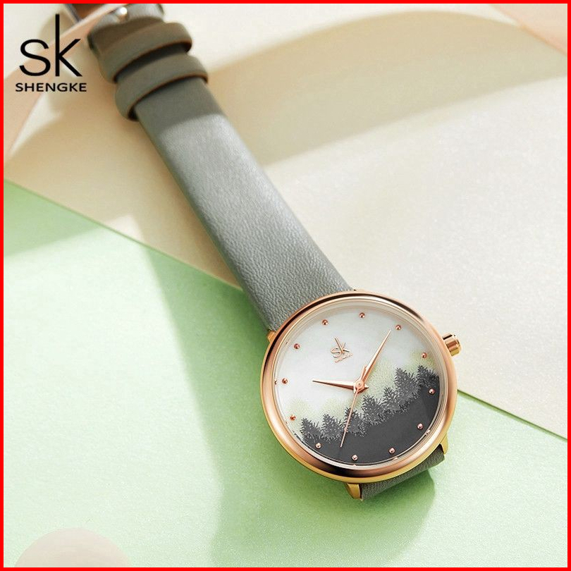 Shengke Jam Tangan Wanita Casual Elegant Leather Strap Quartz Movement Tahan Air K9020