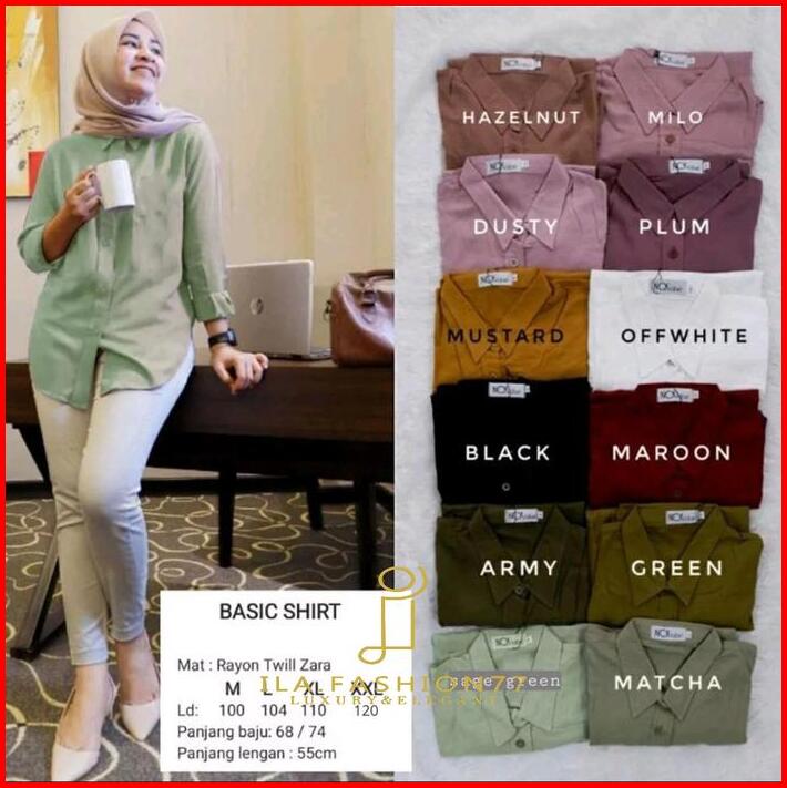 Kemeja Wanita Premium Basic Shirt Polos Lengan Panjang Busui Friendly Kasual Import Bahan Rayon Twill Nyaman Di Pakai At