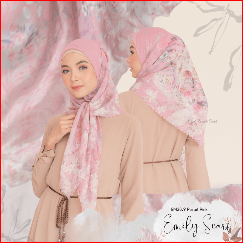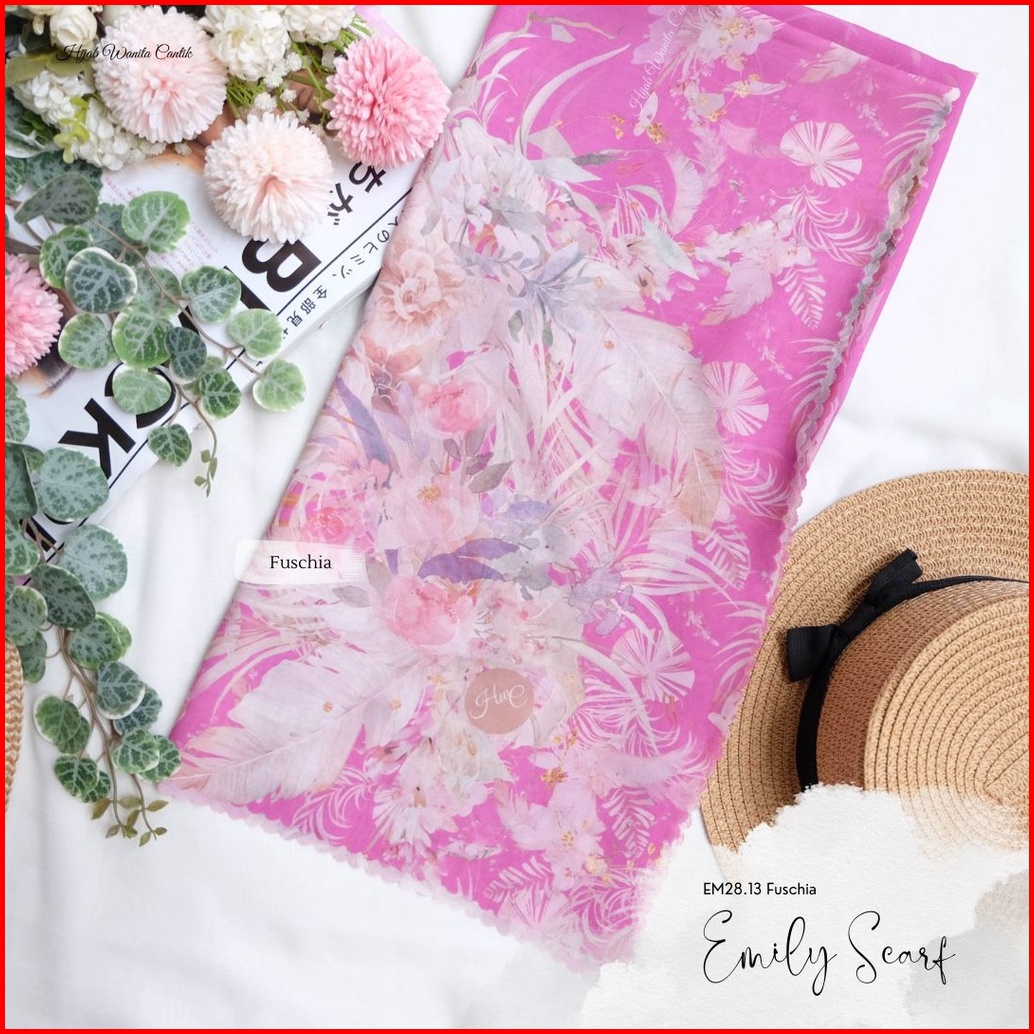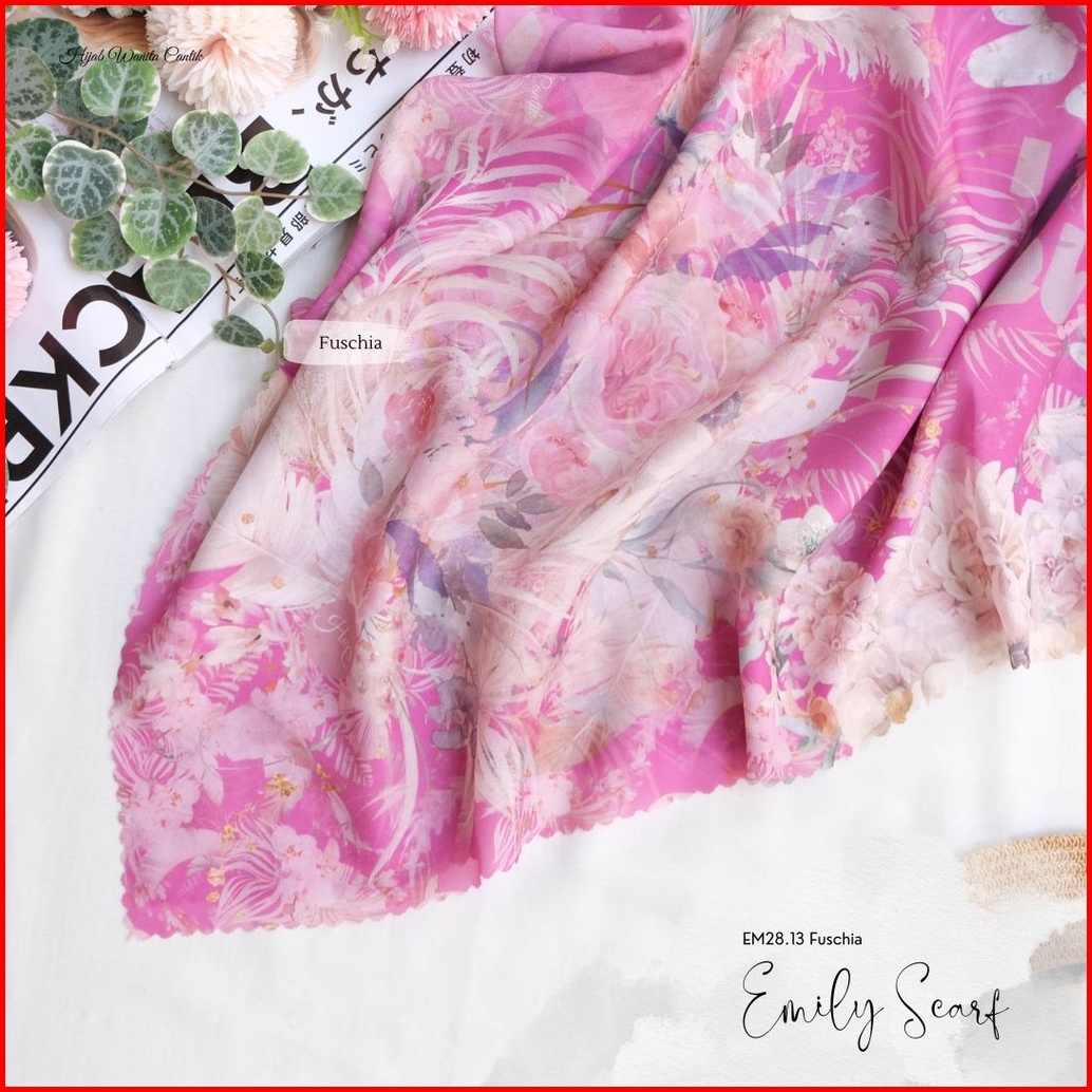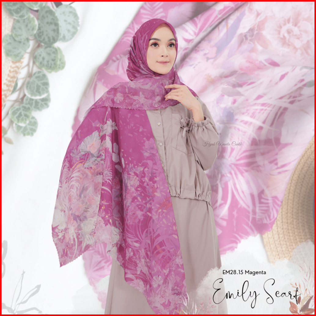 Hijabwanitacantik - Emily Scarf Polycotton Fuschia Hijab Segi Empat Motif Jilbab Segiempat