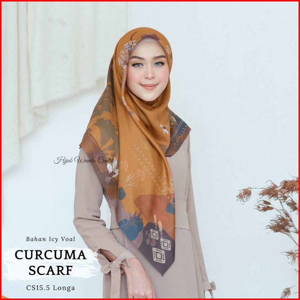 Hijabwanitacantik - Segiempat Curcuma Scarf Icy Voal - Cs15.5 Longa Hijab Segi Empat Motif Jilbab Voal Kerudung Printing