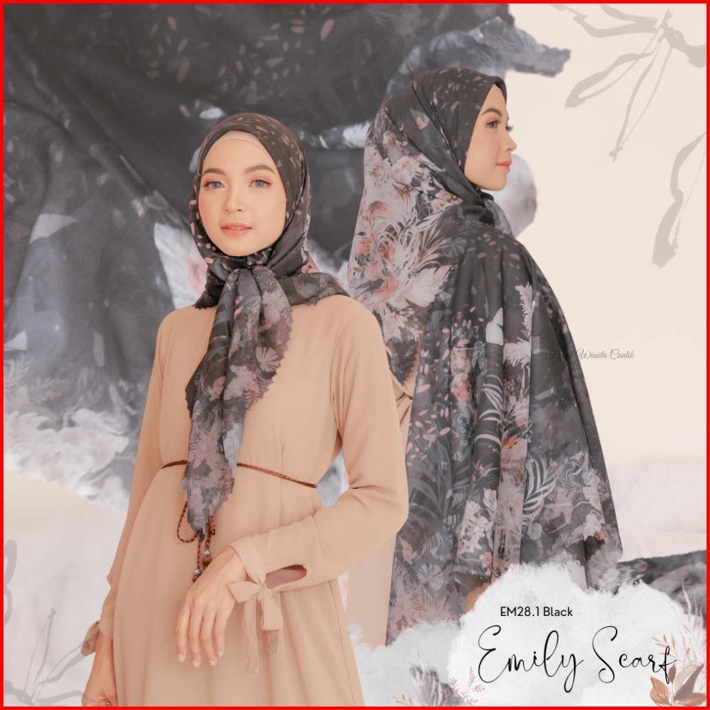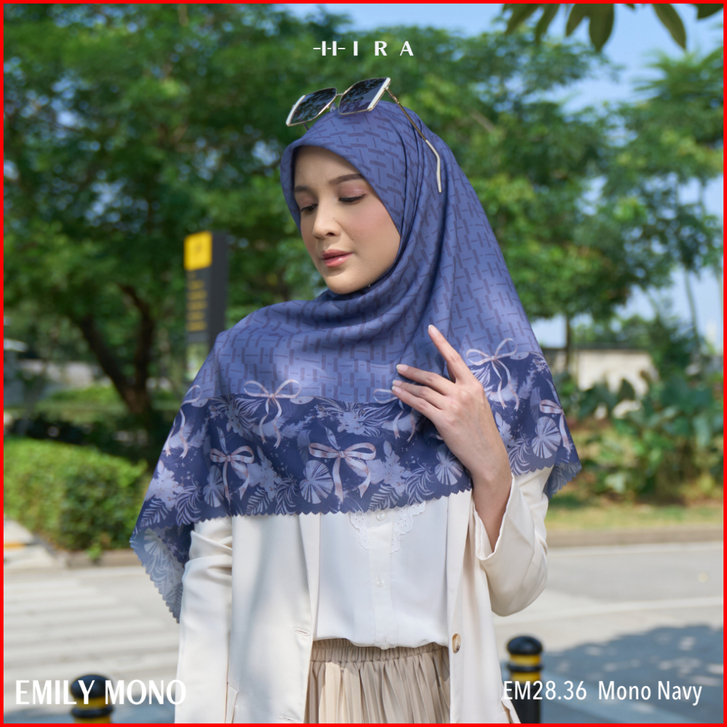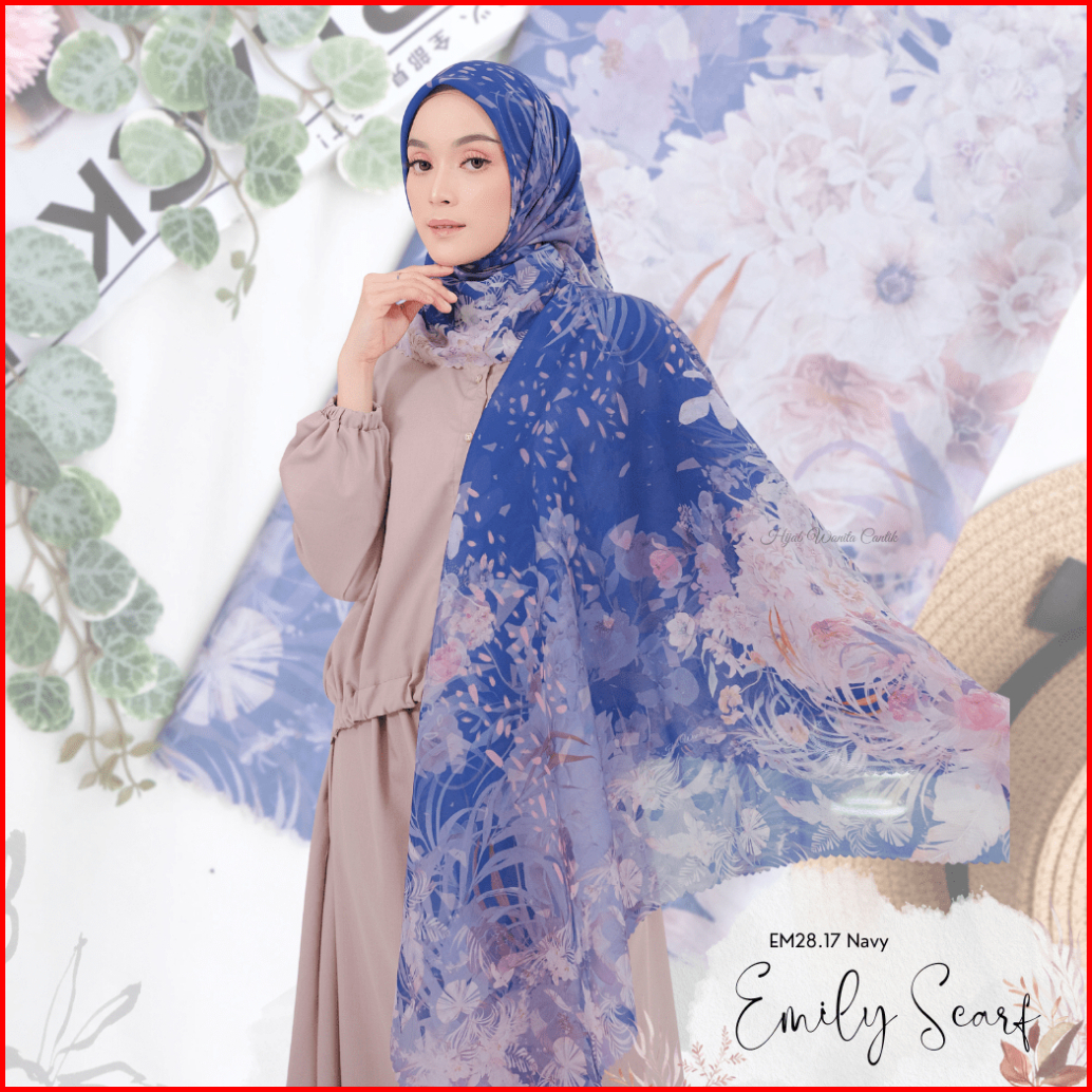 Hijabwanitacantik - Emily Scarf Polycotton Voal Navy Hijab Printing Segi Empat Motif Premium
