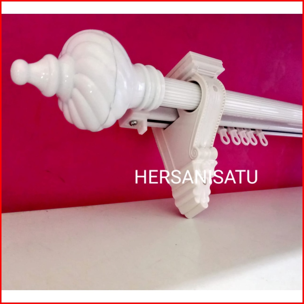 New Breket Double Besi Gorden Kotak Oval Alkan Full Set Rel Gordyn Putih