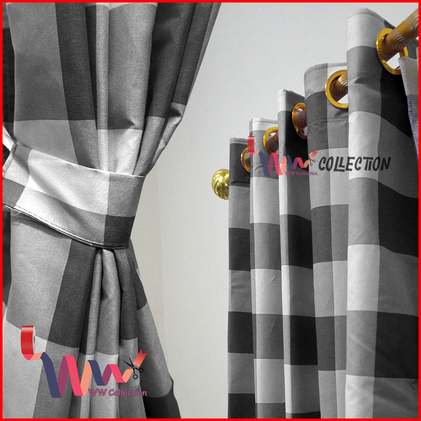Gorden Jendela Pintu Minimalis Smokring Motif Kotak Aesthetic