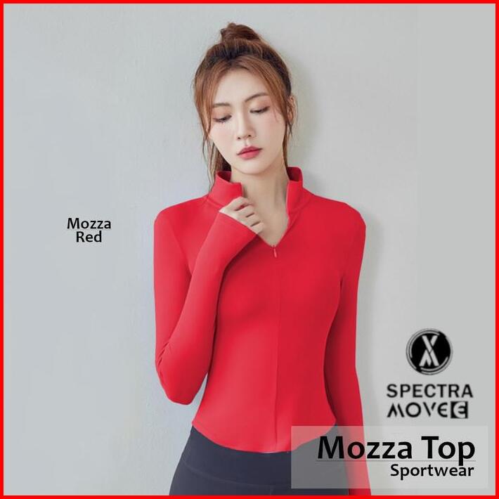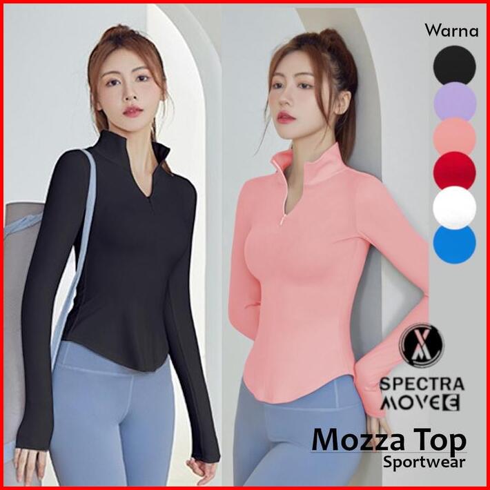 Baju Olahraga Wanita Mozza Top Kaos Gym Tangan Panjang Atasan Senam Zumba Aerobic Pilates Poundfit