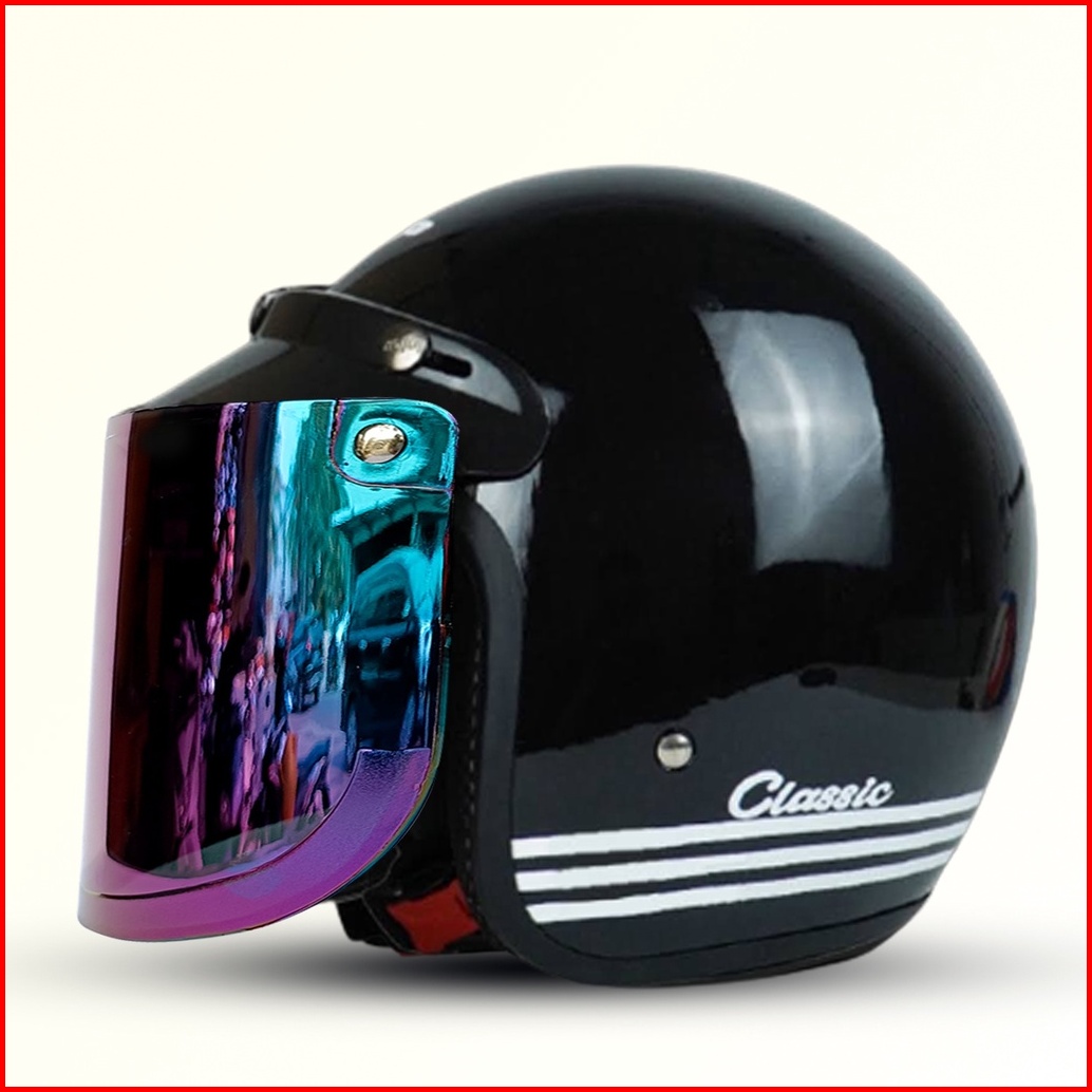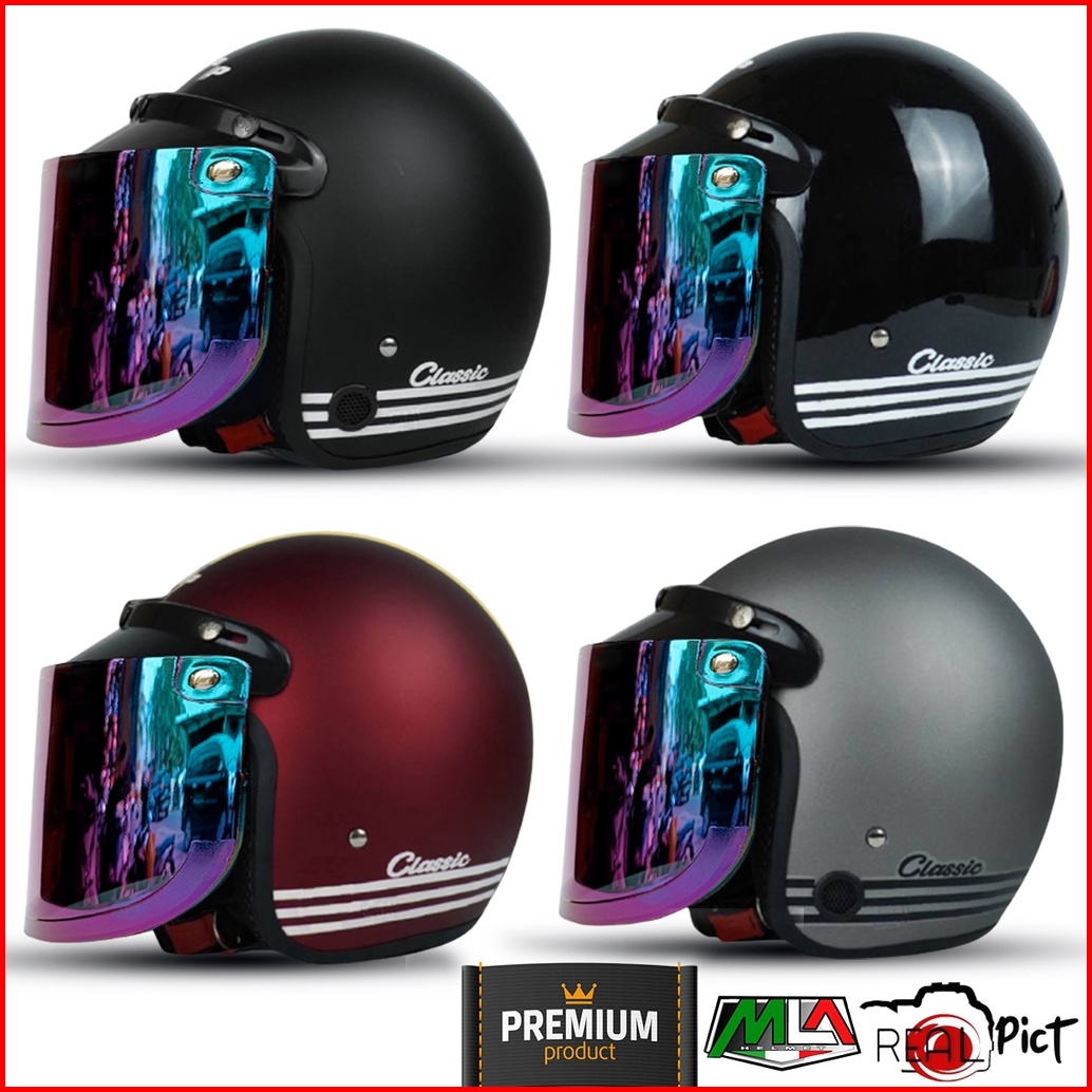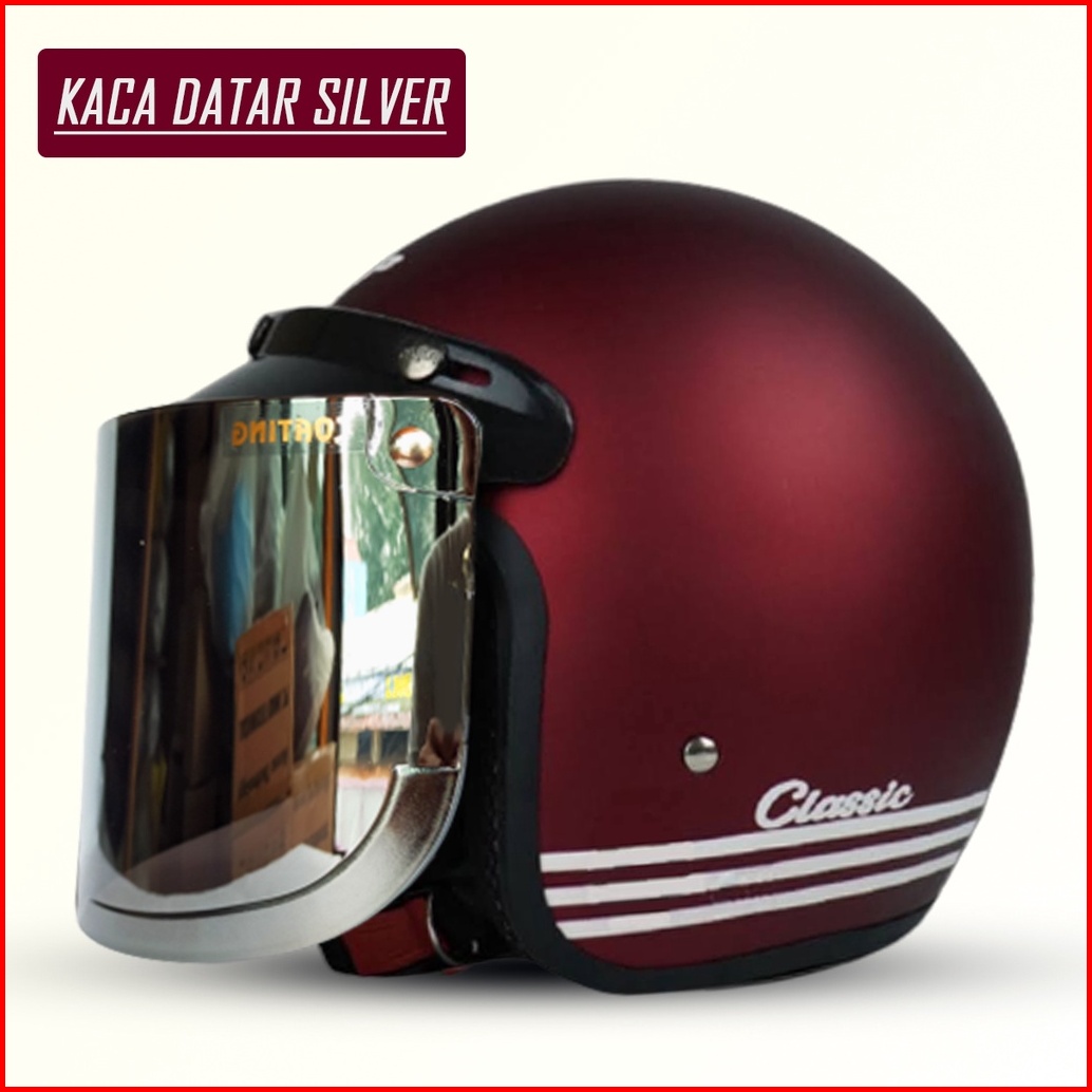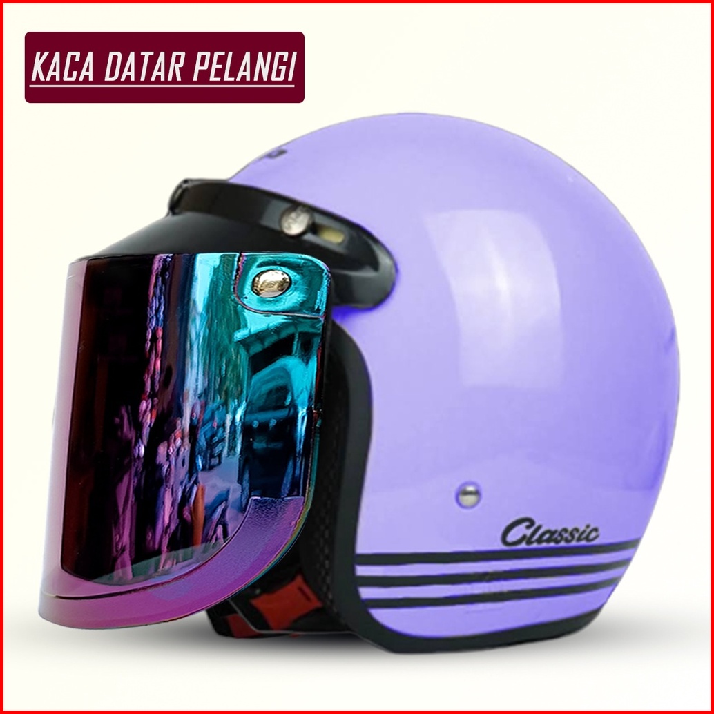 Helm Bogo Retro Classic Pria Dan Wanita Dewasa Sni Murah Harga Pabrik Kualitas Premium Kaca Datar Injak Pelangi Free Pac