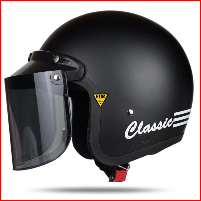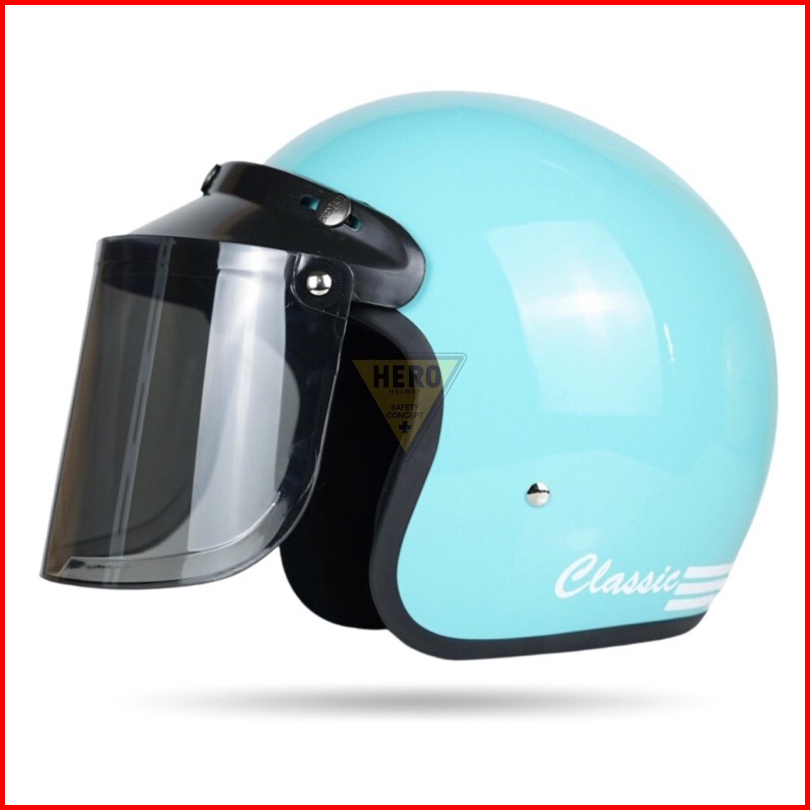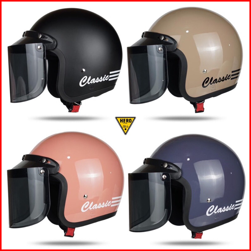 Helm Bogo Classik Garis Tiga Kaca Datar Flat Sni Pria Wanita Dewasa Murah Polos Kaca Helm Classic Free Box Dus