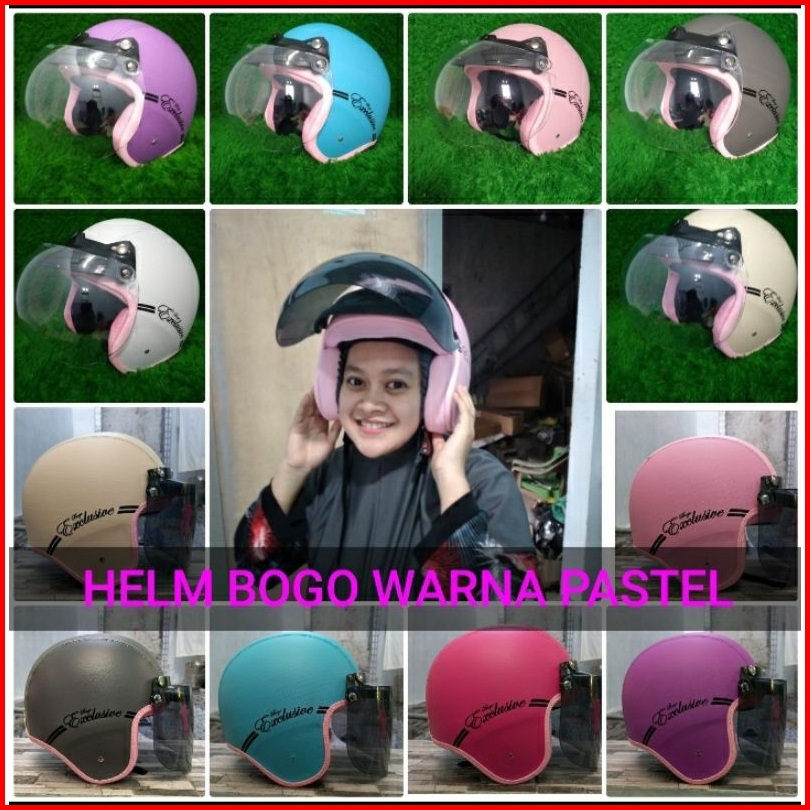Helm Bogo Warna Pastel Size Dewasa Kaca Cembung Dan Datar. Beli 19 Gratis 1