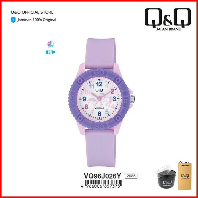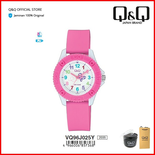 Q Q Qnq Qq Jam Tangan Original Arloji Anak Fashion Analog Rubber - Vq96 Vq96j Water Resist 10 Bar
