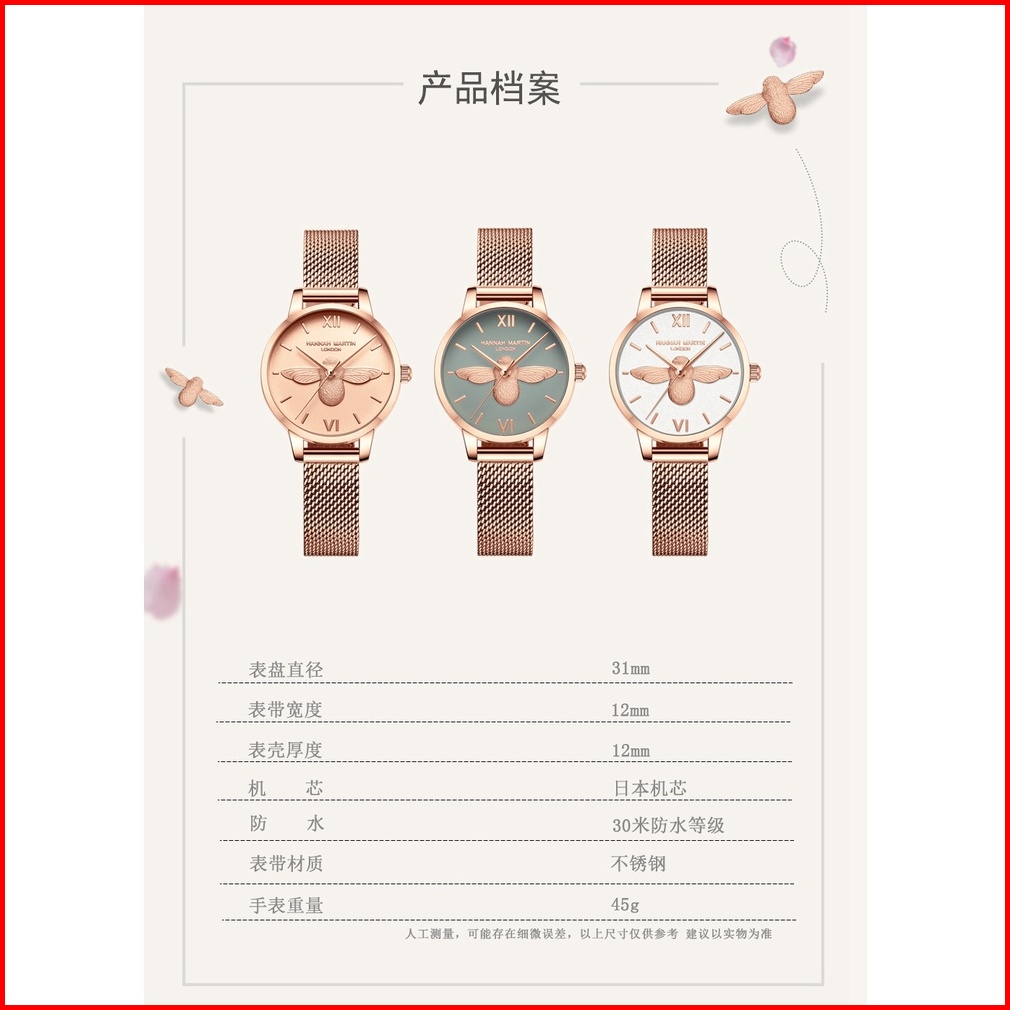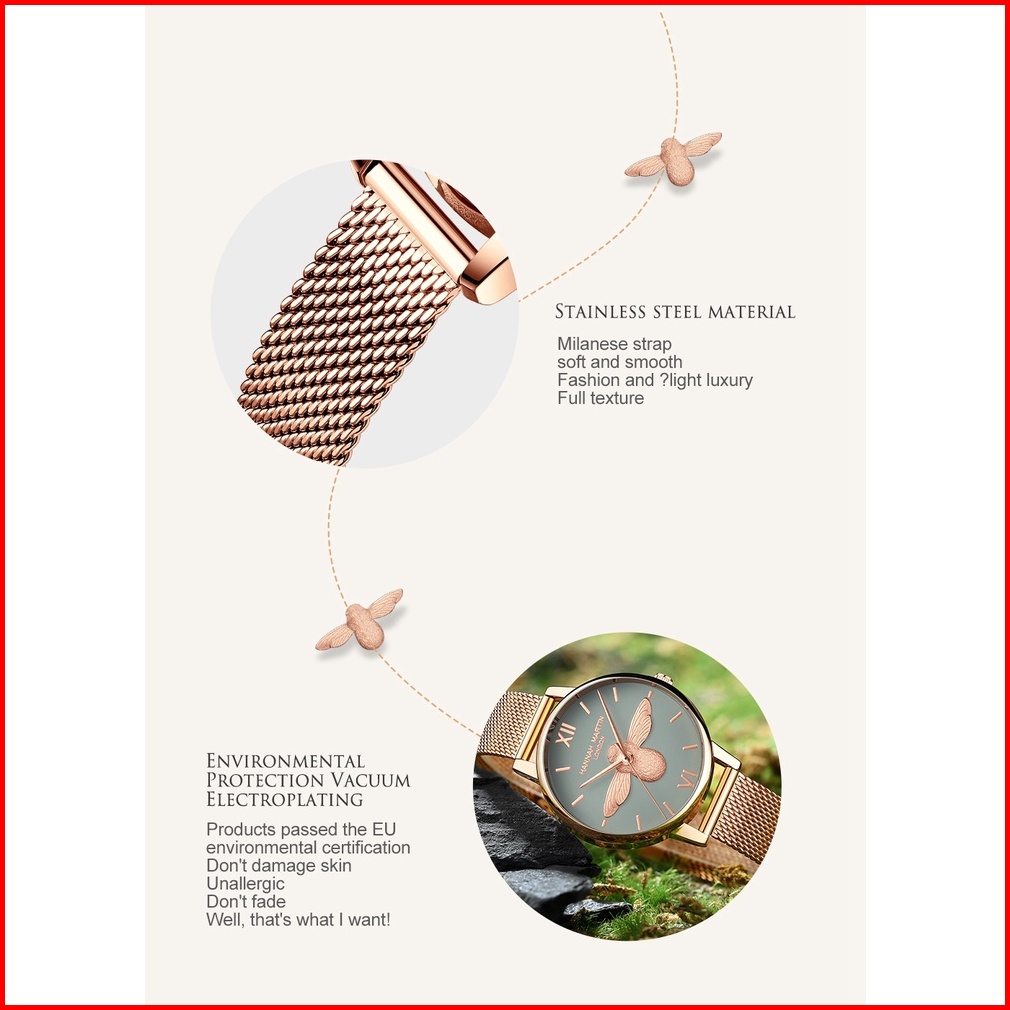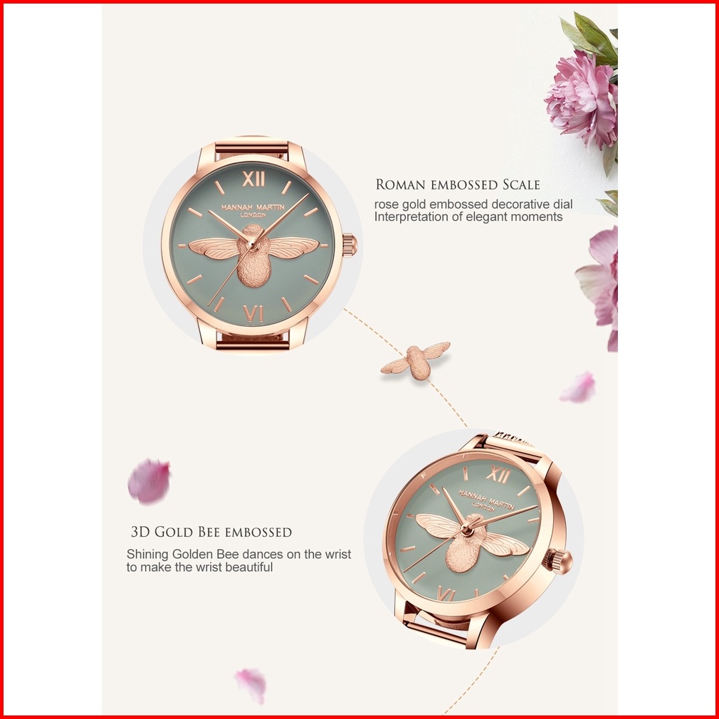 Hannah Martin Jam Tangan Wanita 100 Original Tahan Air Fashion Cewek Pola Lebah Quartz Arloji 112