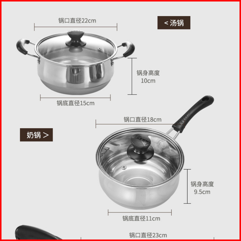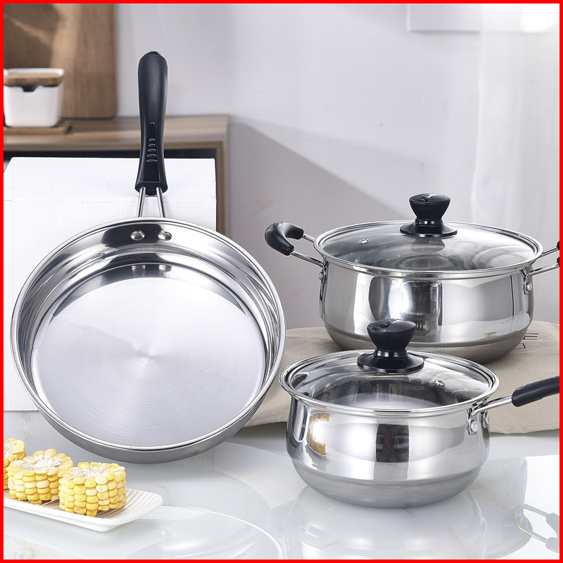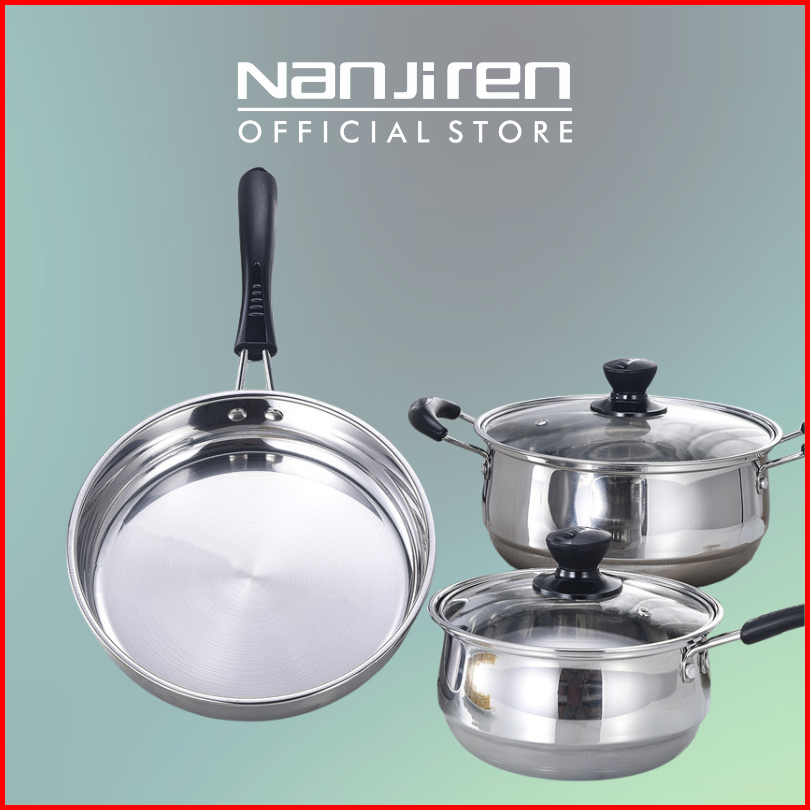Nanjiren - Panci 1 Set Wajan Penggorengnan Isi 3pcs Serbaguna Stainless Steel Panci Teflon Stenlis Kos Panci Soup Milk M