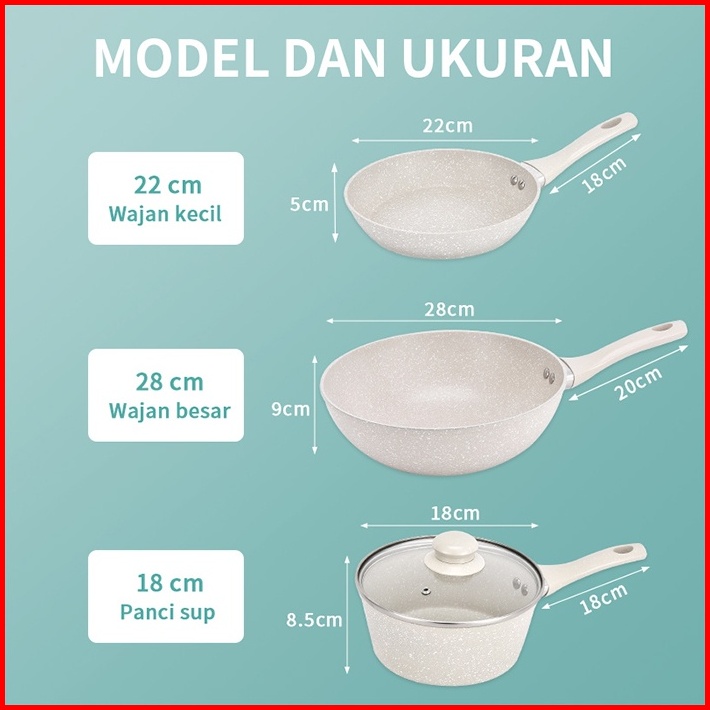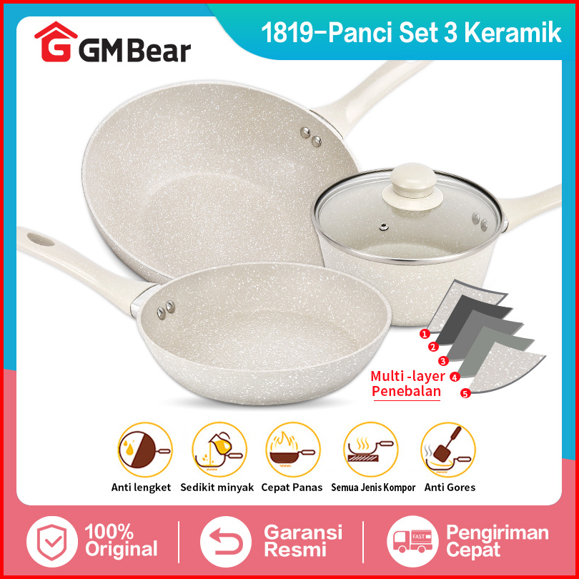Gm Bear Panci Set Keramik Anti Lengket P0411 - Luversa Panci Ceramic Set 3psc