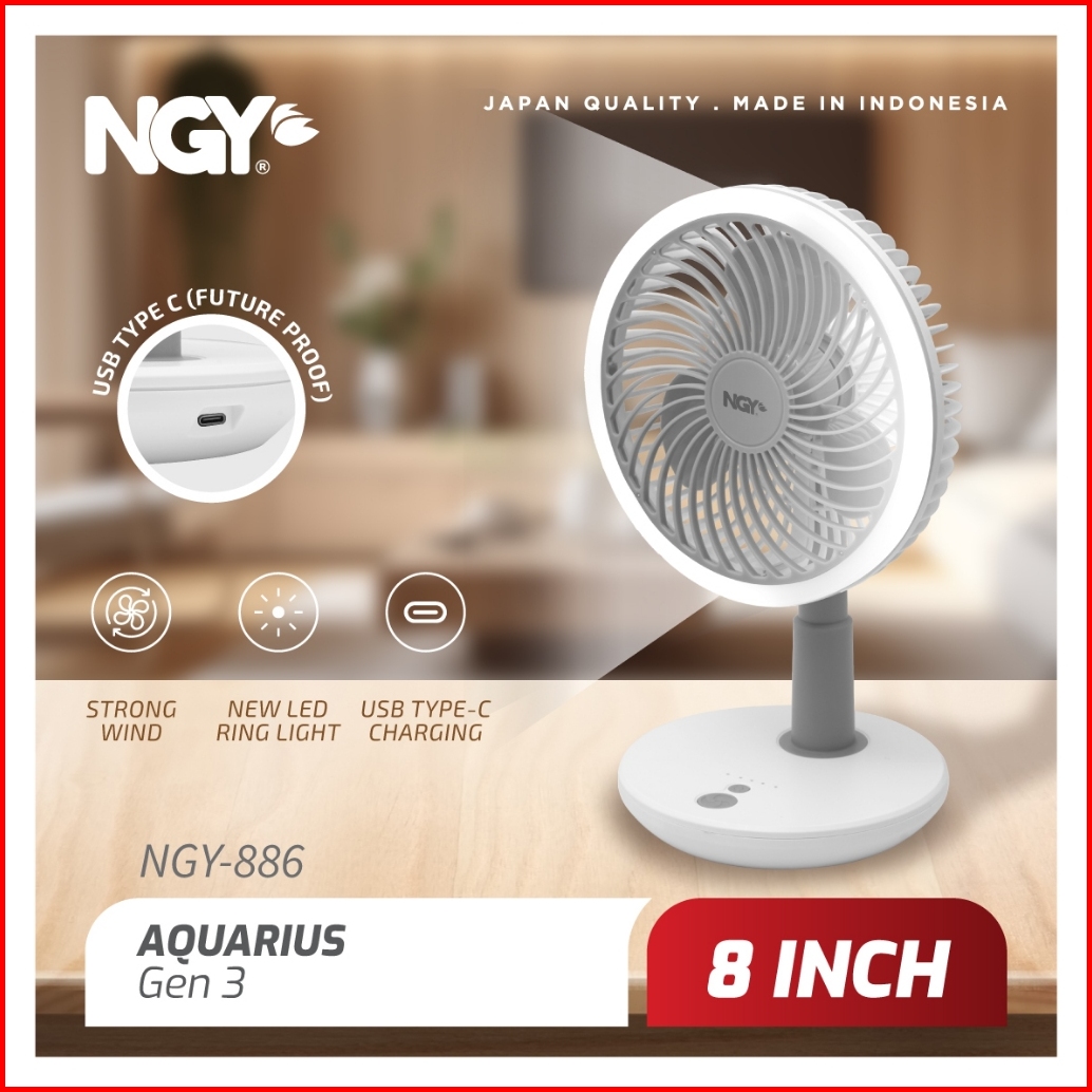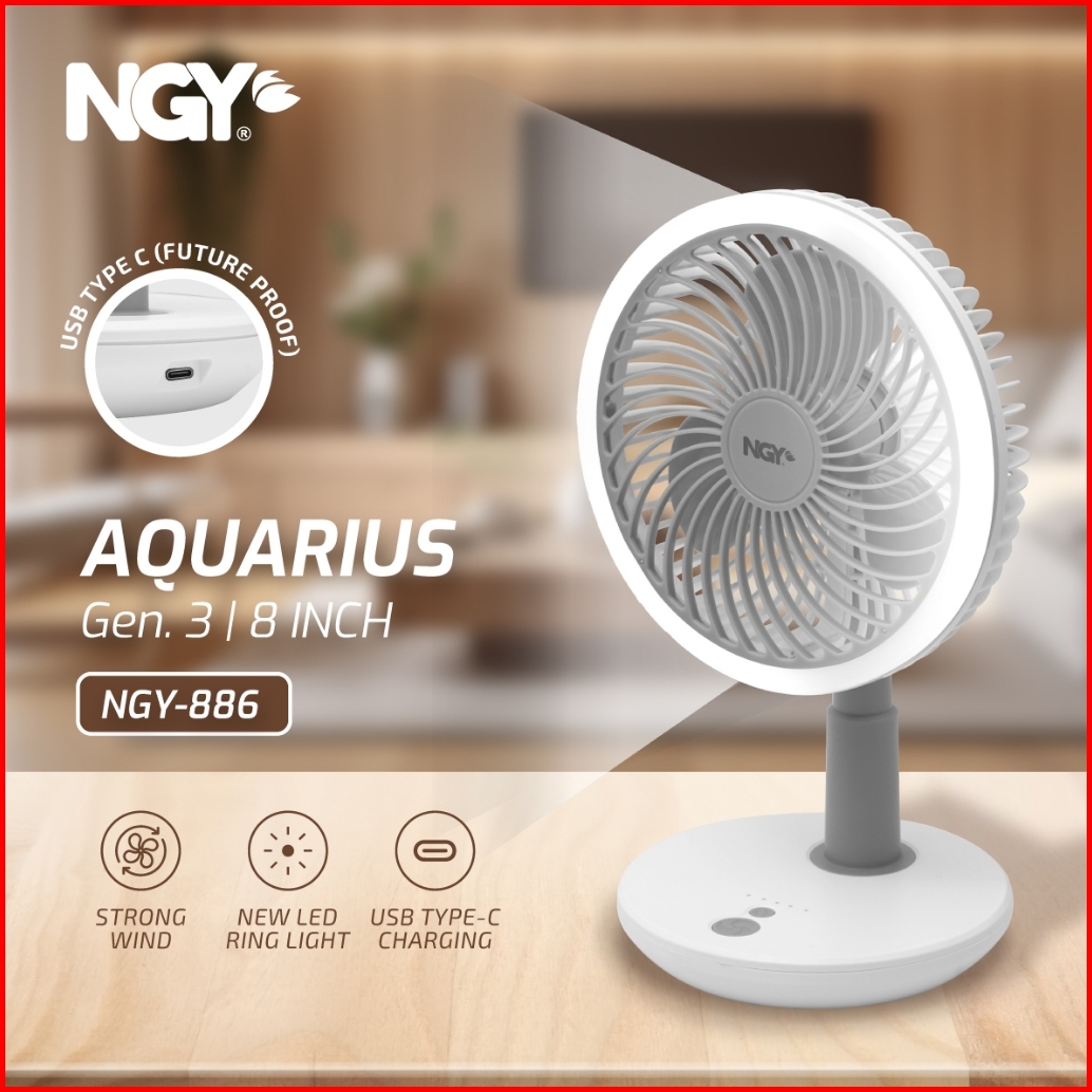 Ngy Aquarius Portable Rechargeable Desk Fan Kipas Angin Meja Portabel Ngy-886 Nagoya