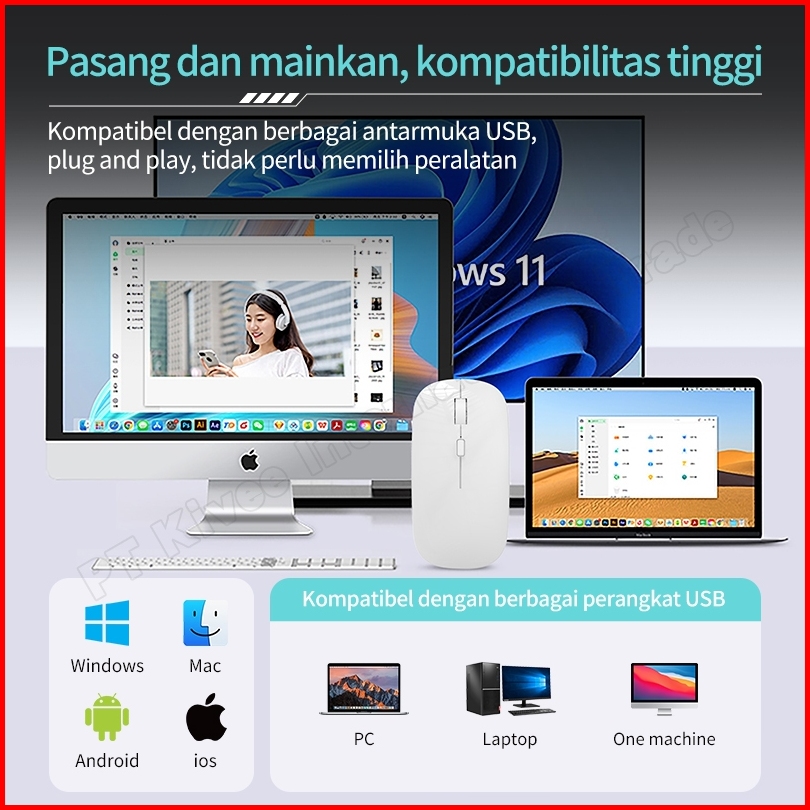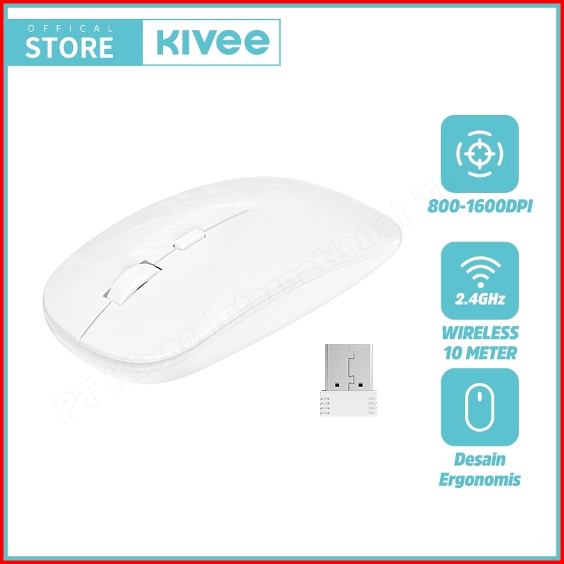 Kivee Mouse Wireless Mini White 2.4ghz Optical 1600dpi Untuk Pc Laptop - Garansi 1 Tahun
