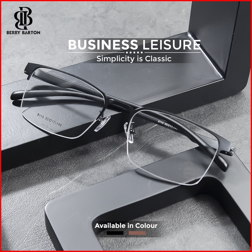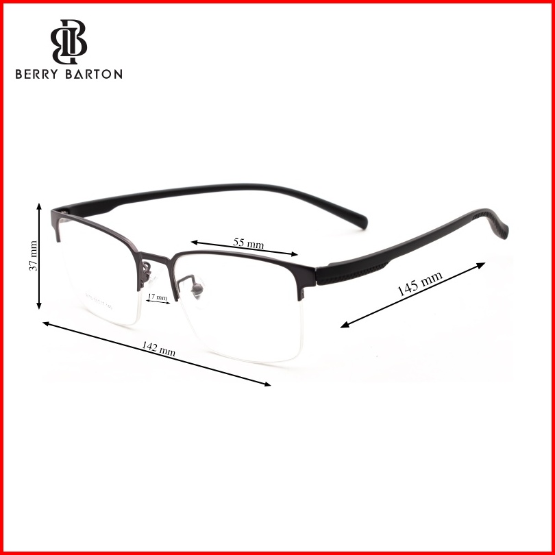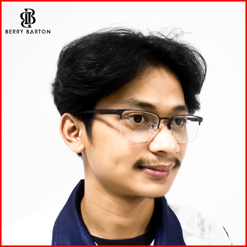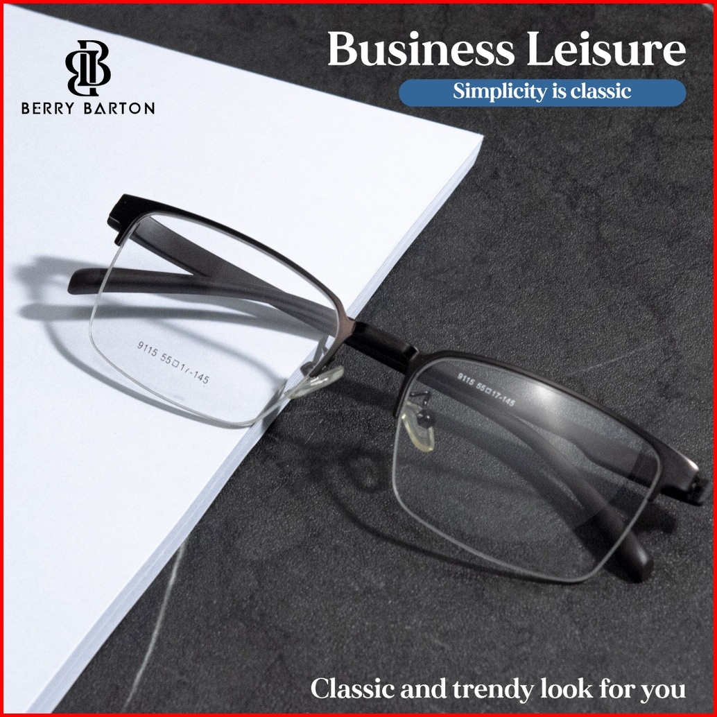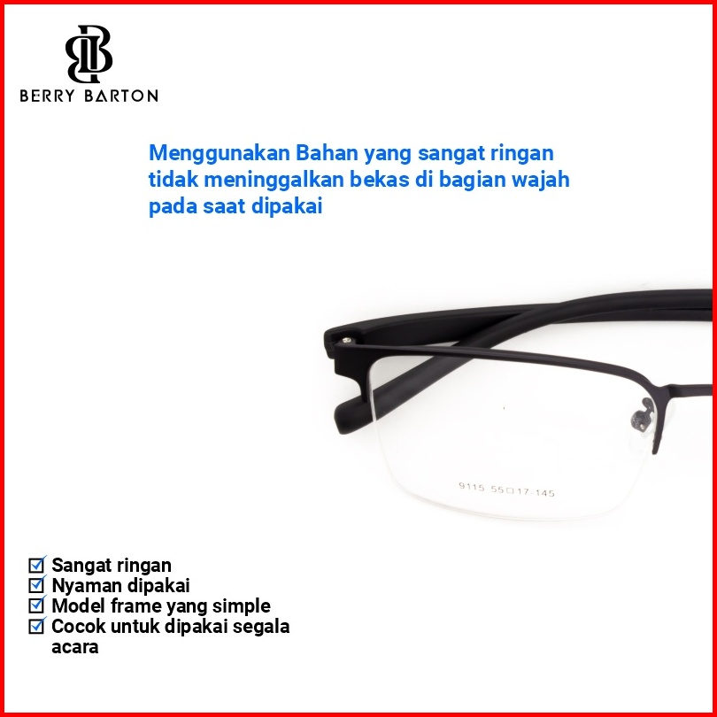 Berrybarton - Kacamata Segi Empat Titanium Lentur Anti Radiasi Bluecromic Pria Wanita 9115