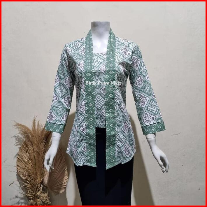 Batik Kebaya Kutubaru Blouse Motif Atasan Seragam Wanita Baju Katun Panjang