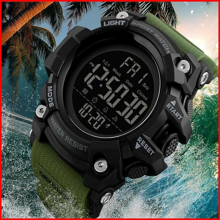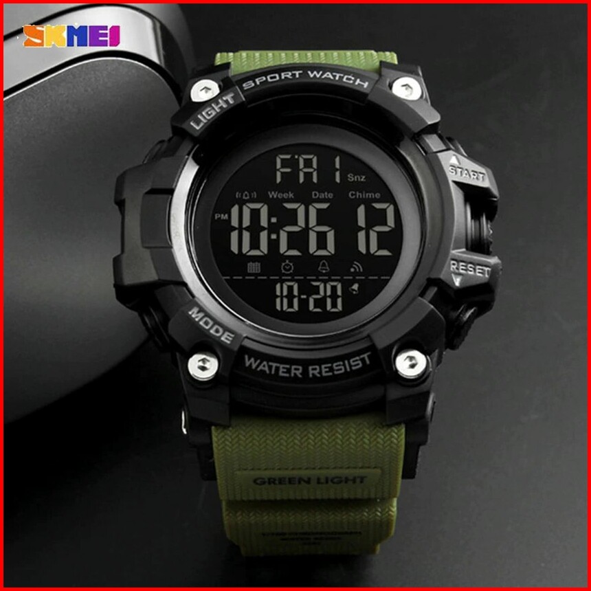 Jam Tangan Pria Digital Skmei 1384 Army Green Water Resistant 50m