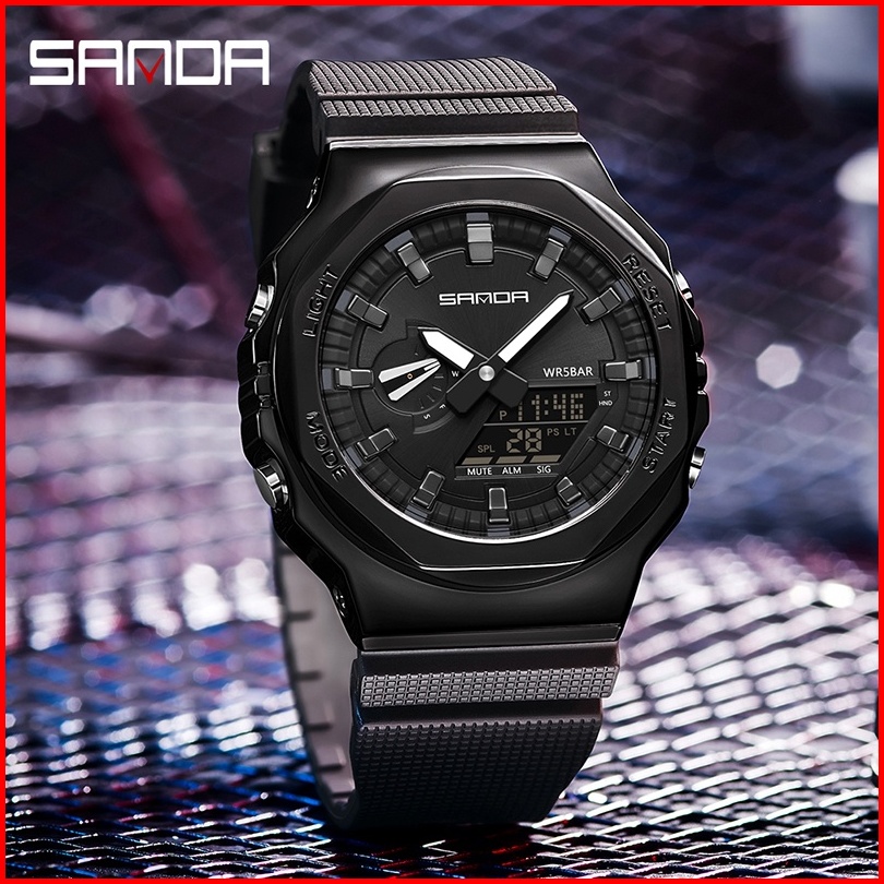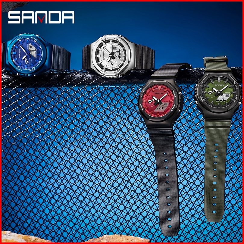 Sanda 3167 Jam Tangan Pria Wanita Digital Sport El Backlight Tali Rubber Anti Air