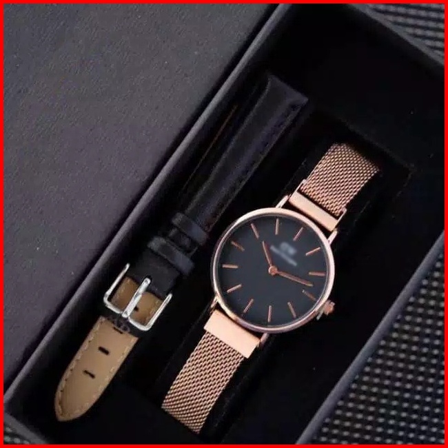 Jam Tangan Wanita Tali Rantai Pasir Magnet Free Box Paperbag Baterai Cadangan